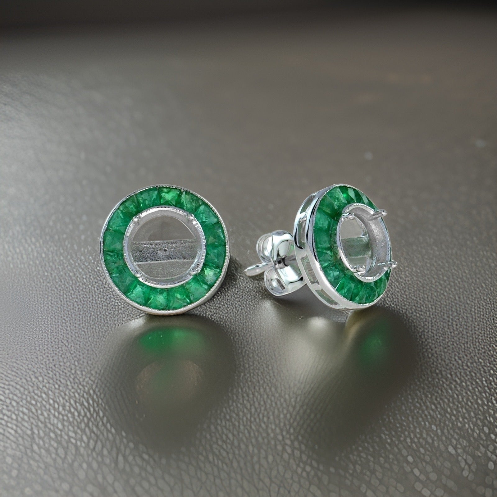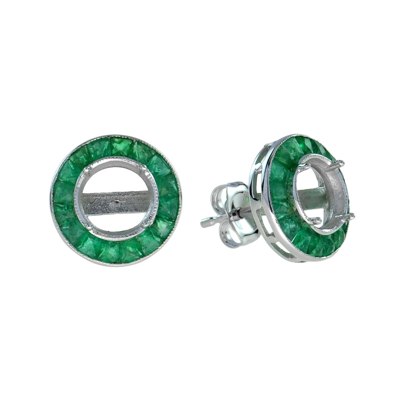 Art Deco Reproduction Aristocrat Semi Mount Earrings, 32 Emerald 1.43 cttw, 18K White Gold 3.12g