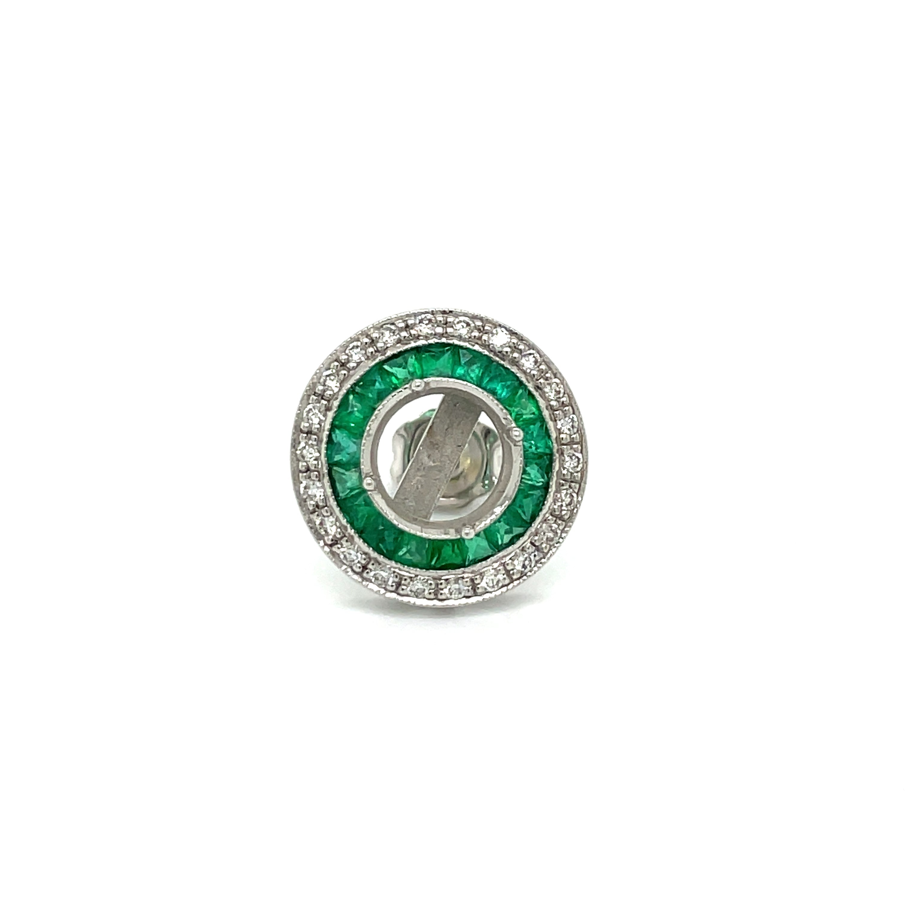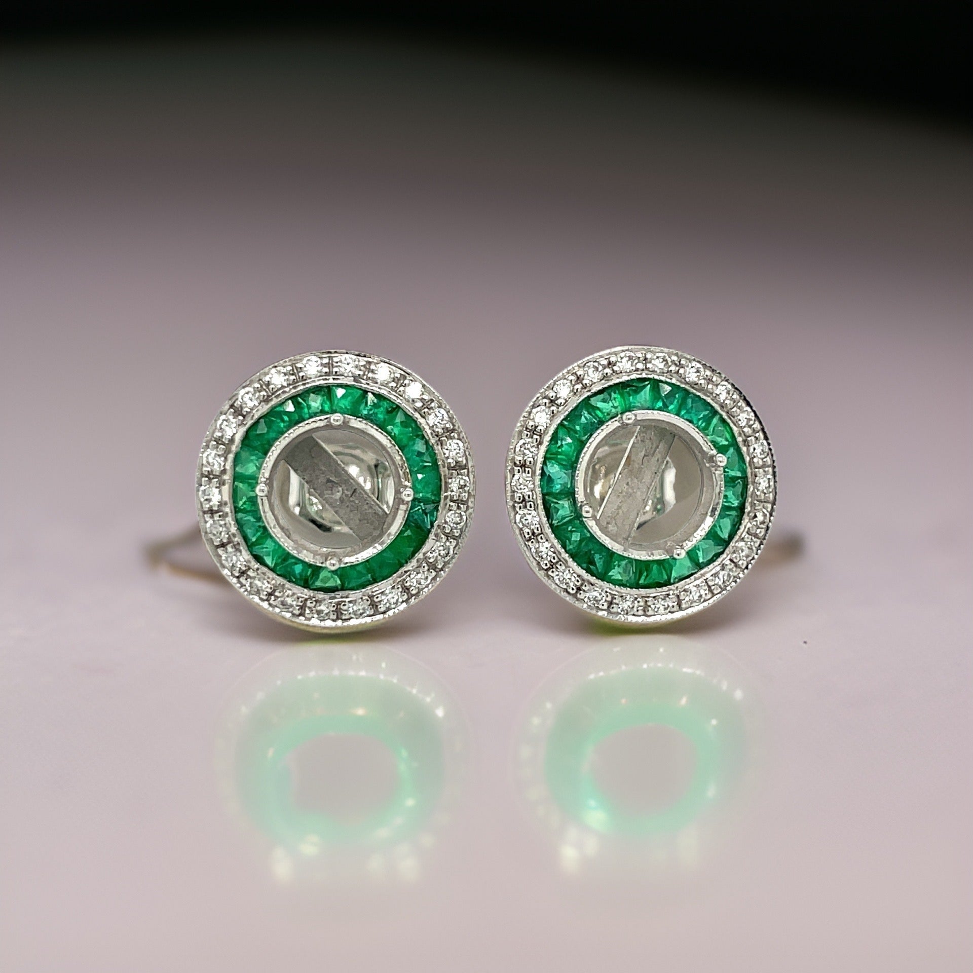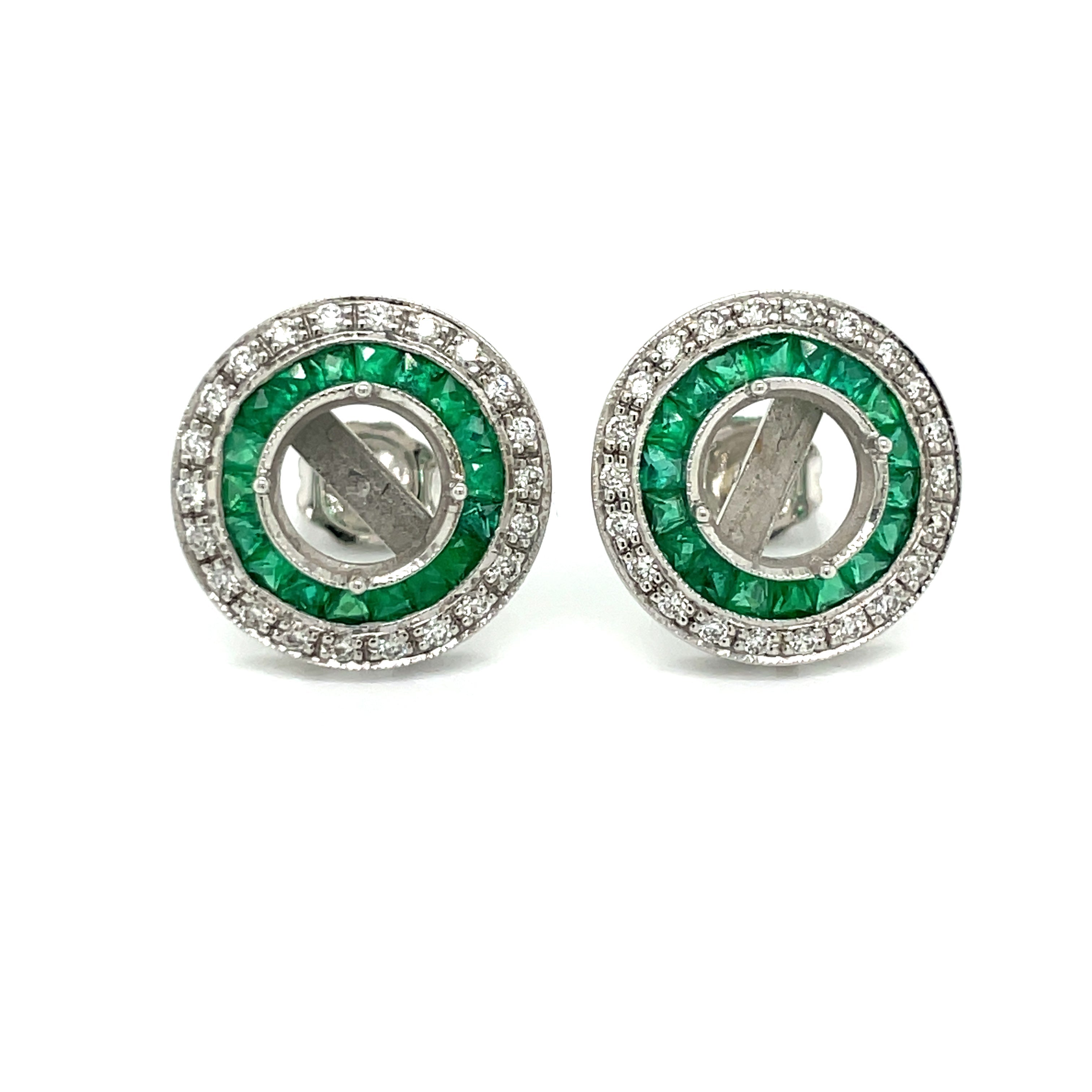 Art Deco Reproduction Aristocrat Semi Mount Earrings, 44 Diamond 0.30 cttw G-H VS2-SI1, 36 Emerald 1.20 cttw, 18K White Gold 4.55g