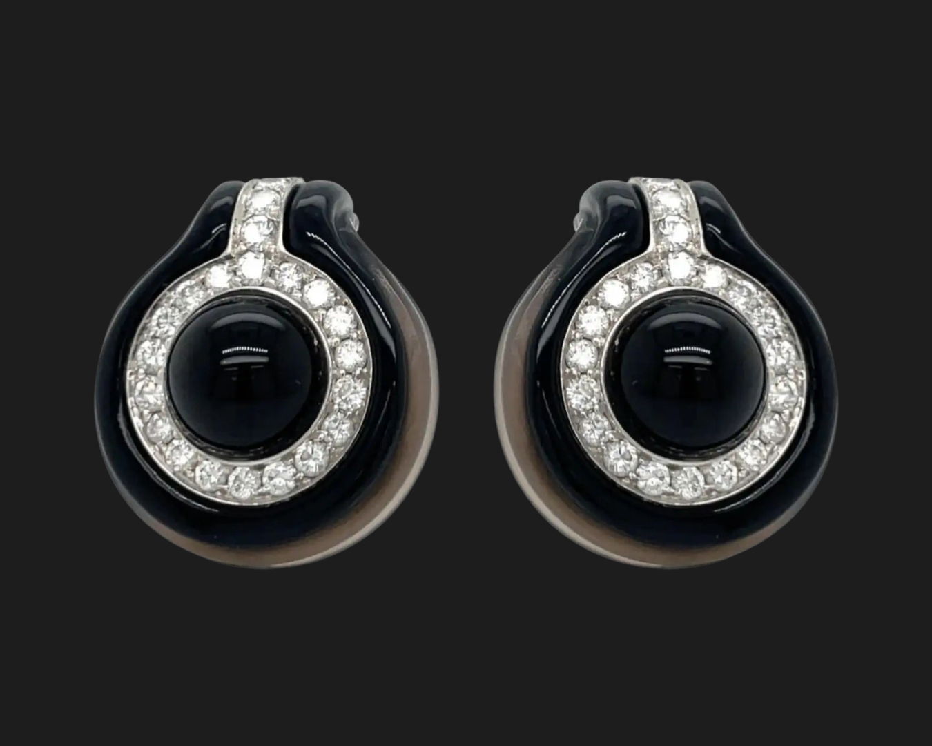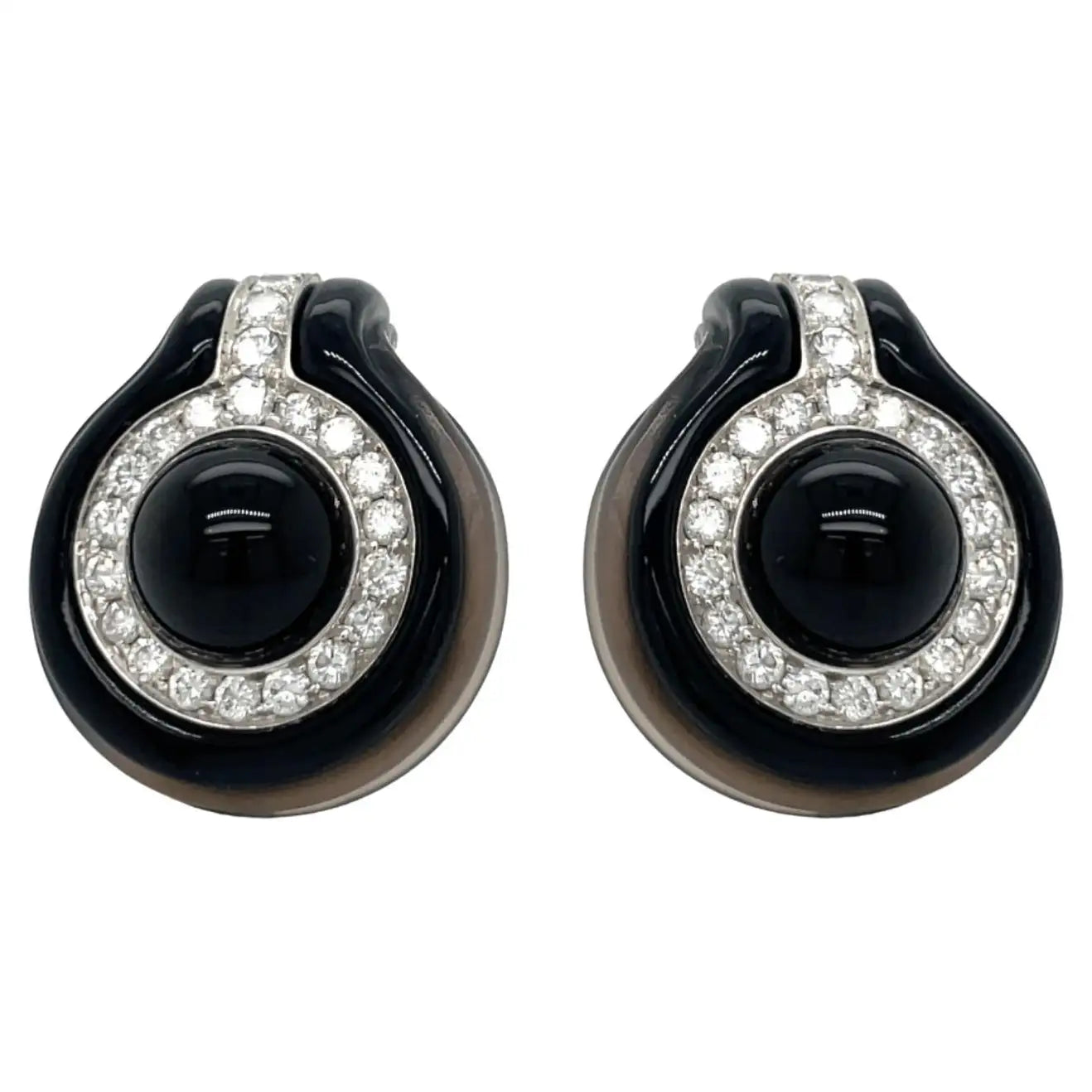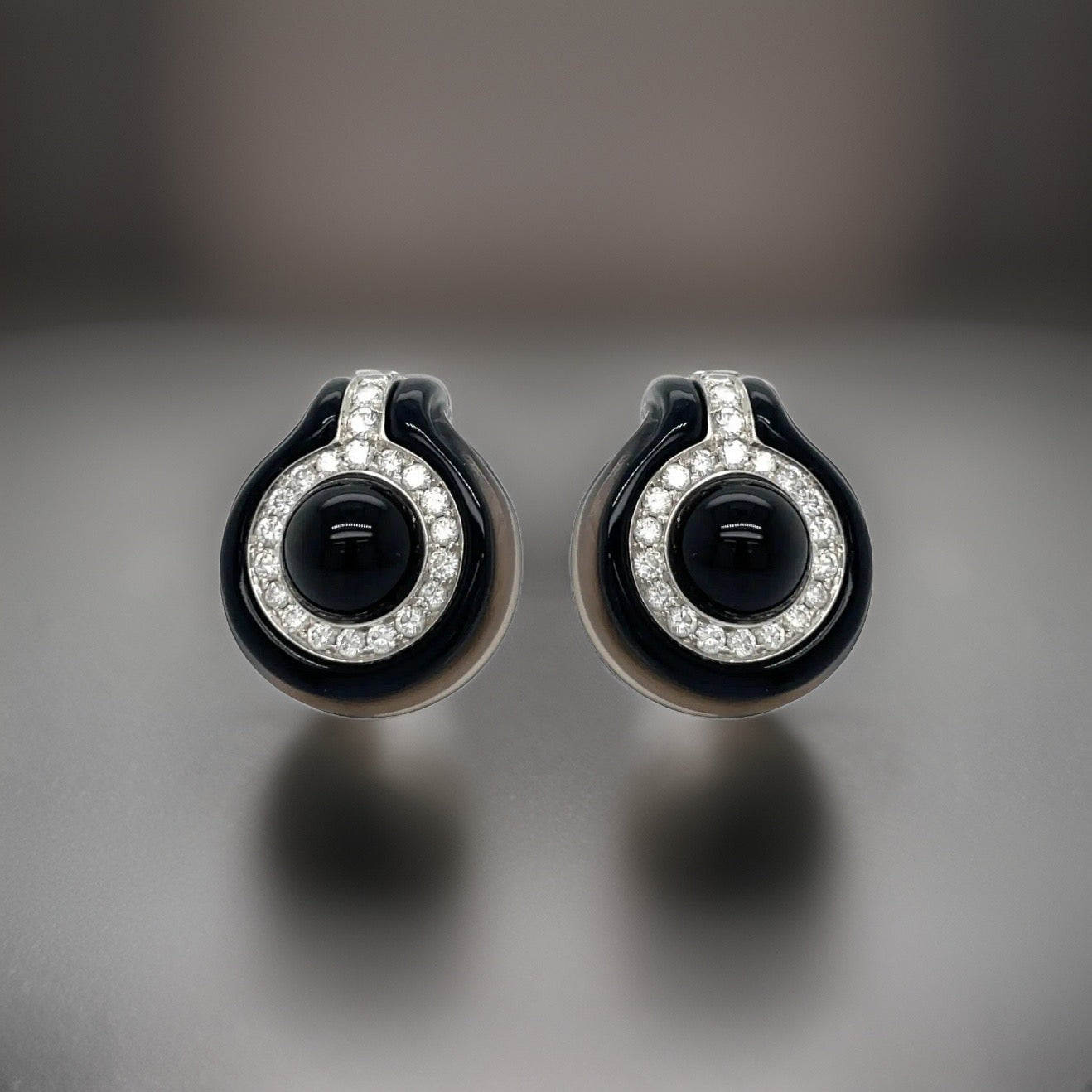Estate Earrings, Round Diamond 3.00 cttw, Freeform Onyx, 18K Yellow Gold 33.41g