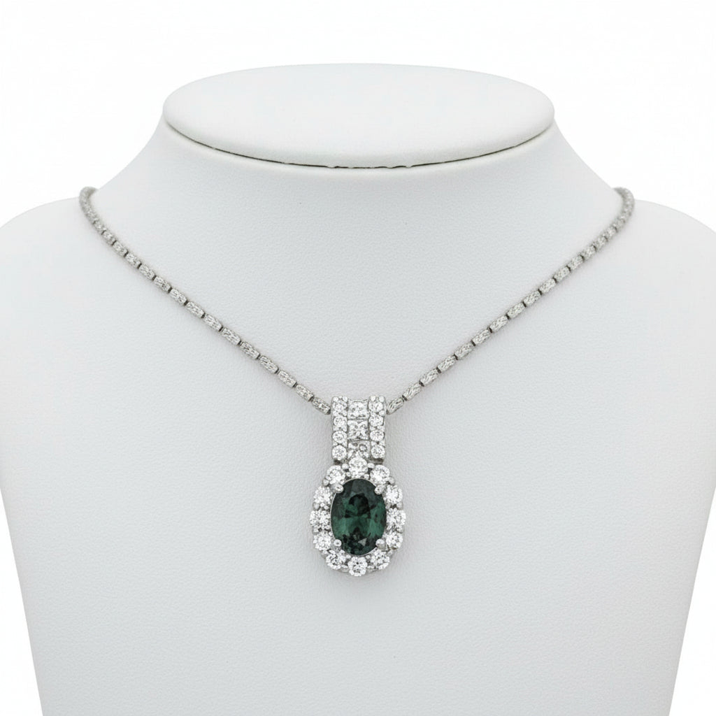 Estate Necklace, Round/Baguette Cut Diamonds 0.68cttw H-I VS2-SI2, 1 Alexandrite Oval 0.85ct Green-Blue to Purple GIA #5232699586, 18K/PLAT White Gold 6.10g. Weights Estimated.