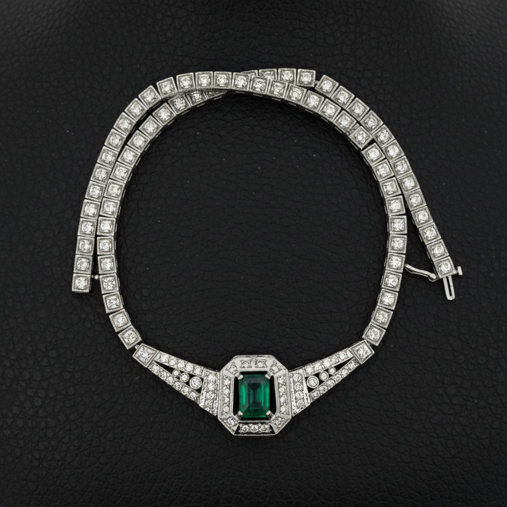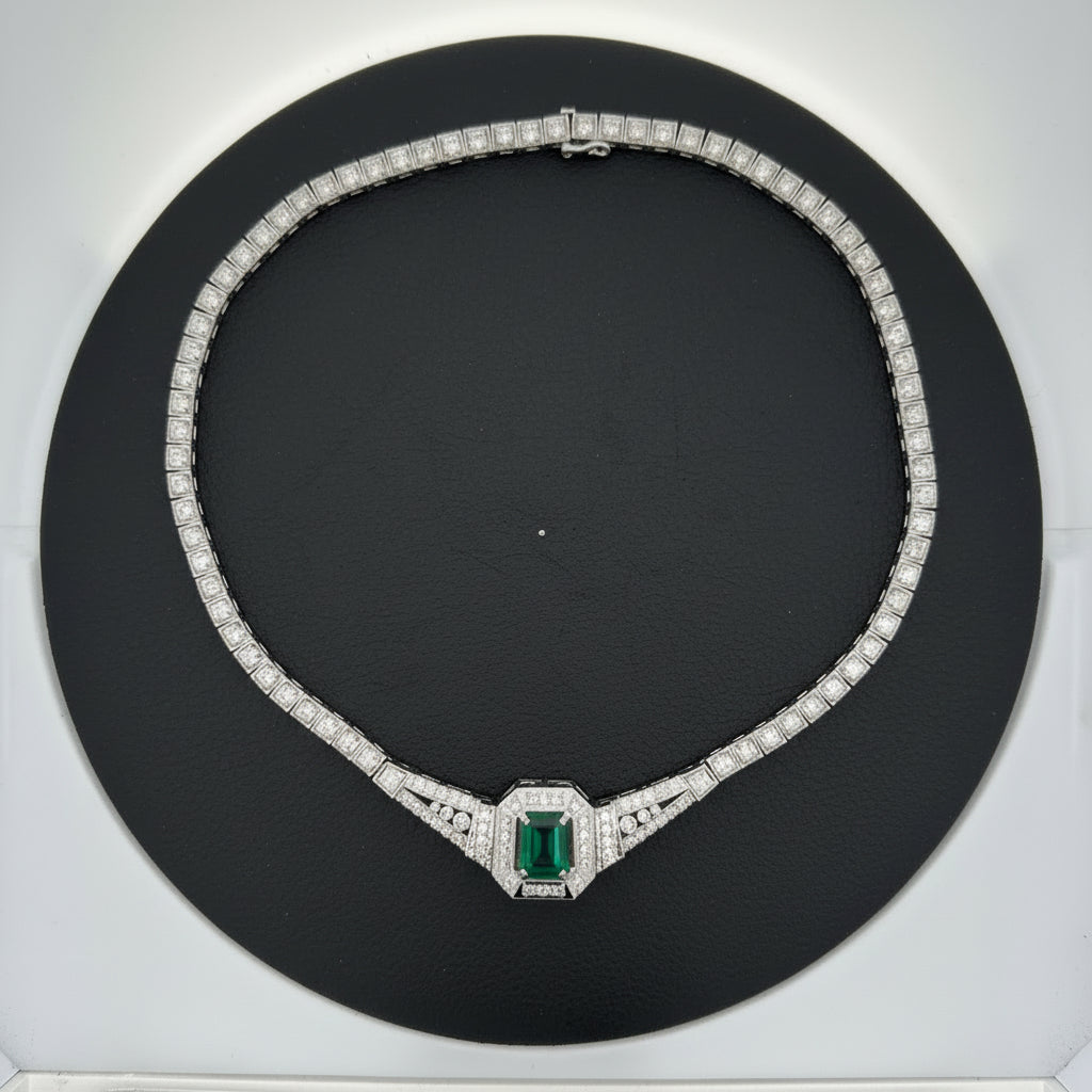 Estate Necklace, Round Brilliant Cut Diamond 5.35cttw. H-I SI2-I1,1 Emerald Emerald Cut 2.71ct. #21303.1348.37 14K White Gold 55.94g