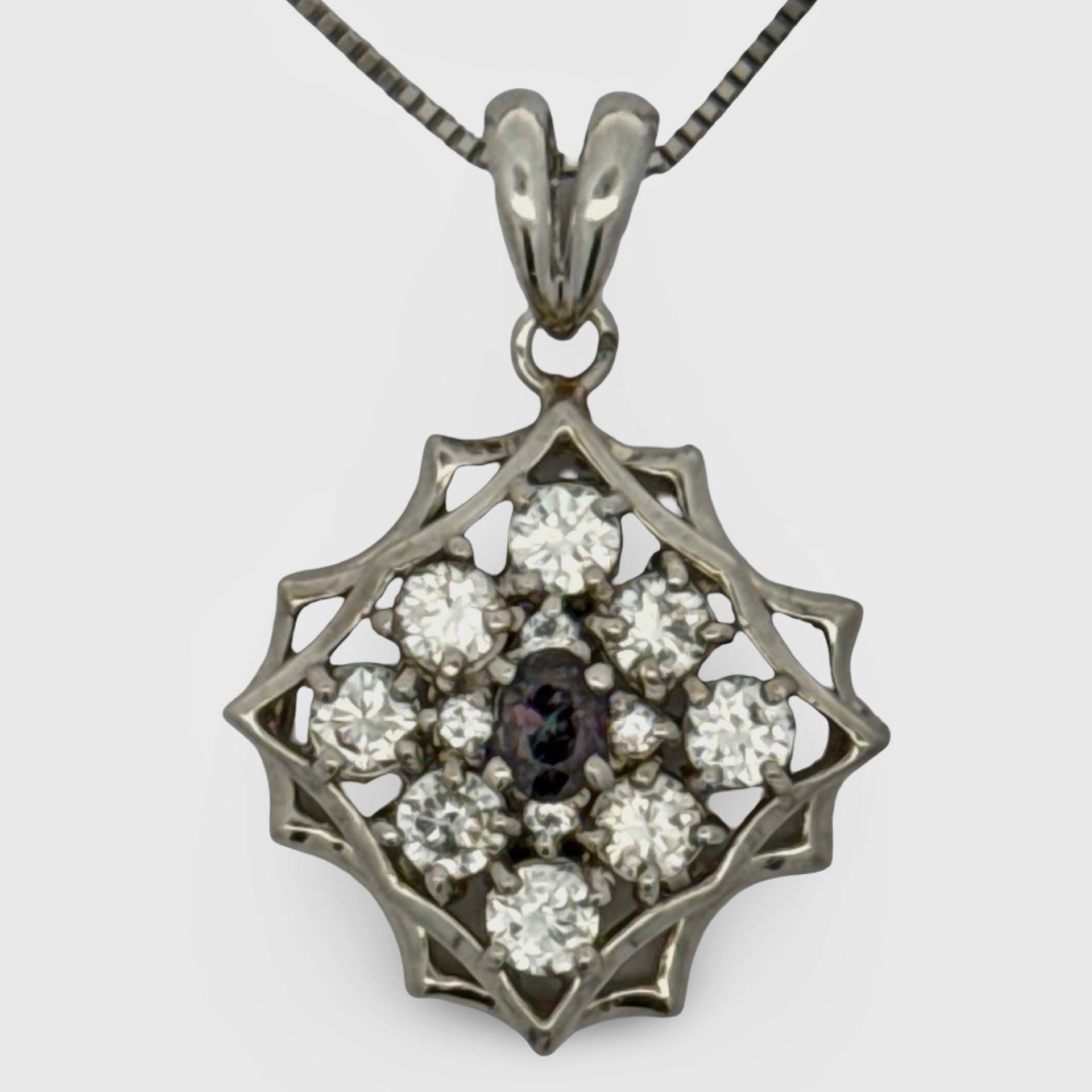 Estate Necklace, 12 Round Brilliant Cut Diamonds 0.71cttw H-I SI1-SI2 NGGL #2408691,1 Alexandrite Oval 0.19ct, Platinum 6.30g