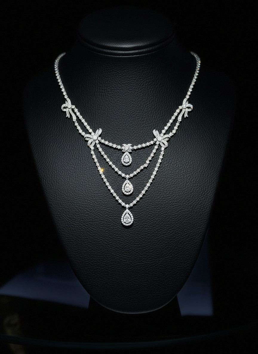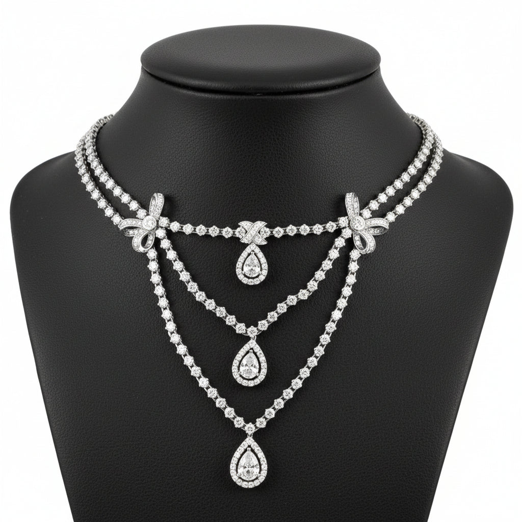 AKMS Necklace, RBC/Pear Diamonds 11.00cttw G-I VS2-SI2, 18K White Gold 38.60g. All Weights Estimated.