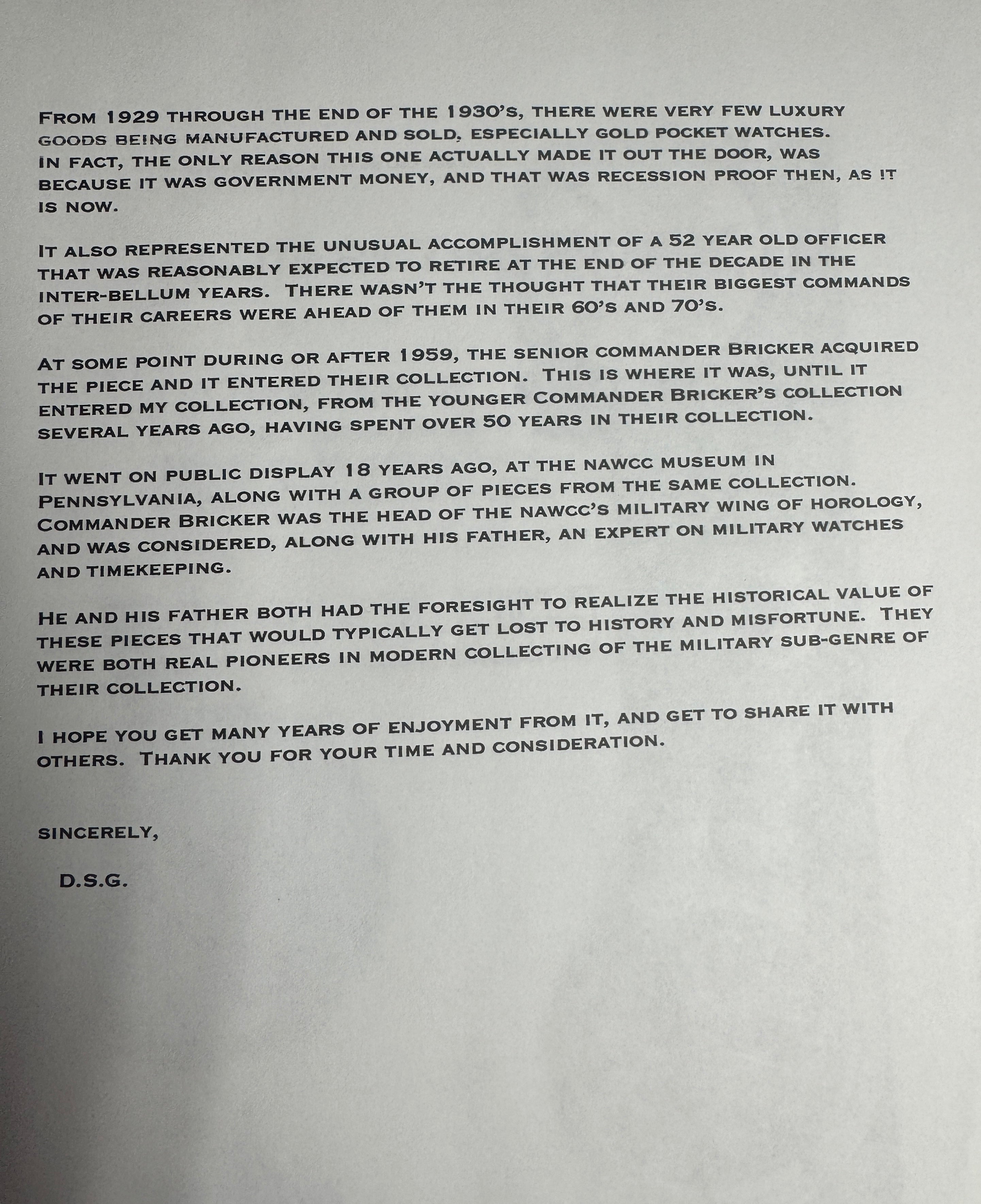 Elgin Watch Company Watch, 10K Gold Filled. Previously on Exhibit at The National Watch and Clock Museum. Book Documentation of History of Owner.