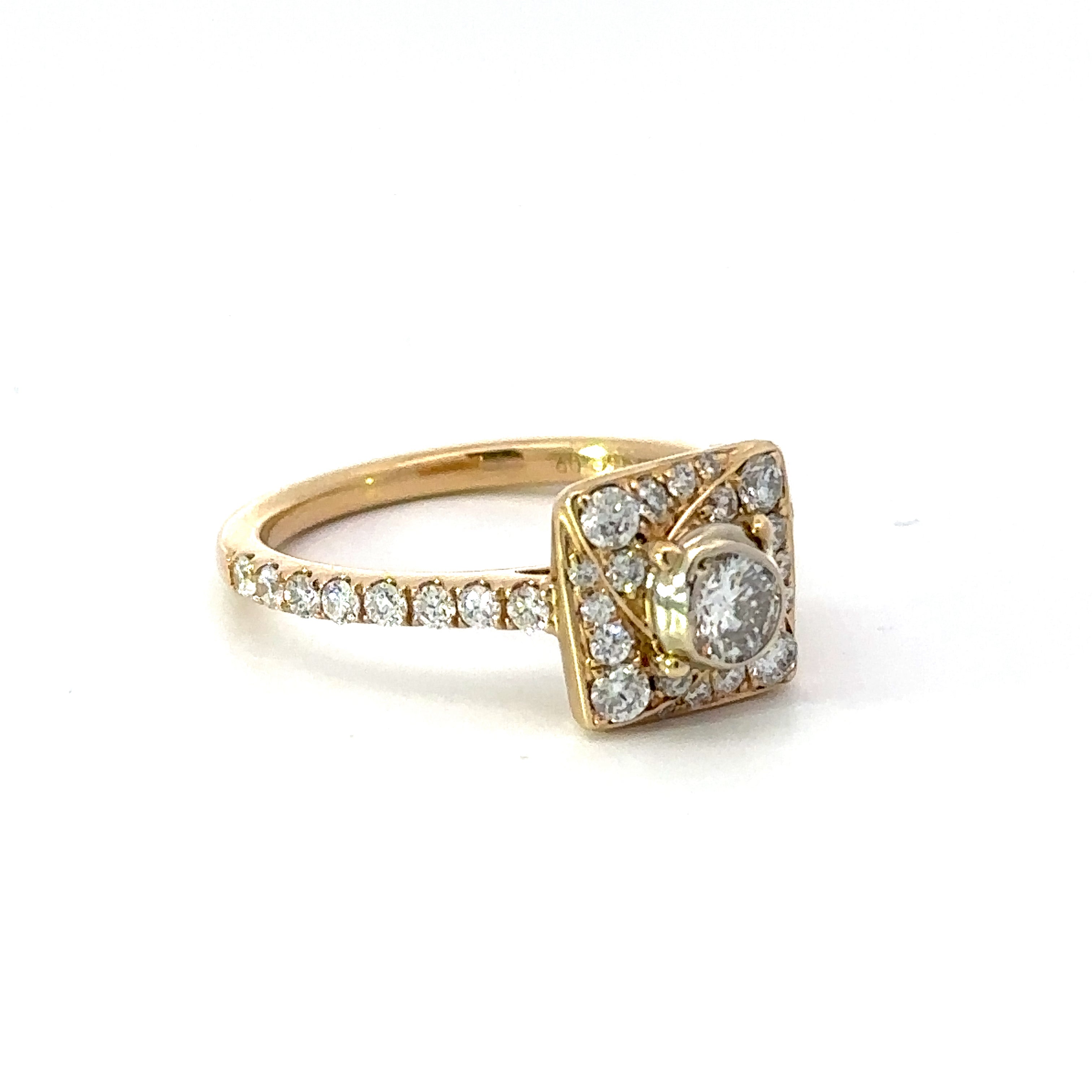 Leo Schachter Ring, 1 Round Diamond 0.25 ct G-H SI1-SI2, Round Diamond 0.50 cttw H-I SI1-I2, 14K White/Yellow Gold 3.84g