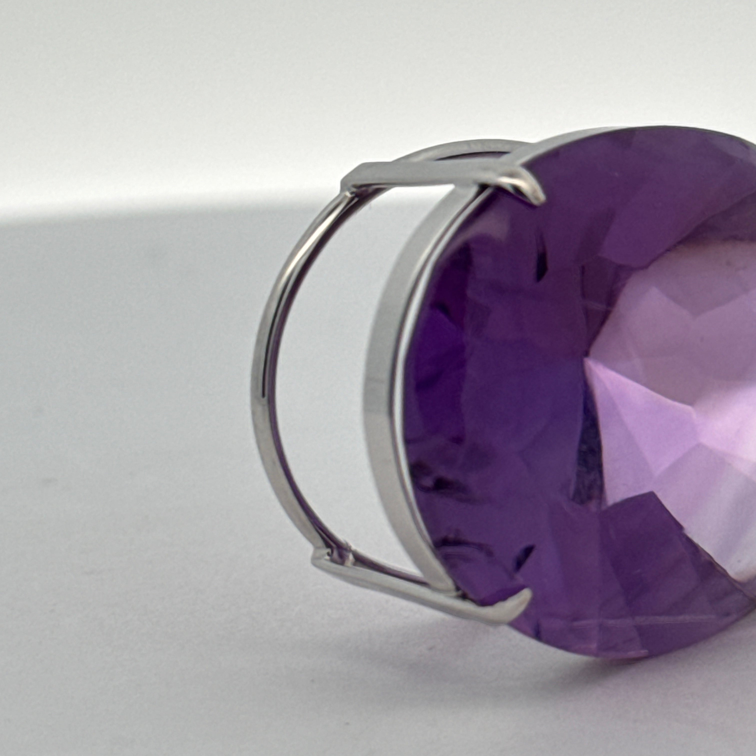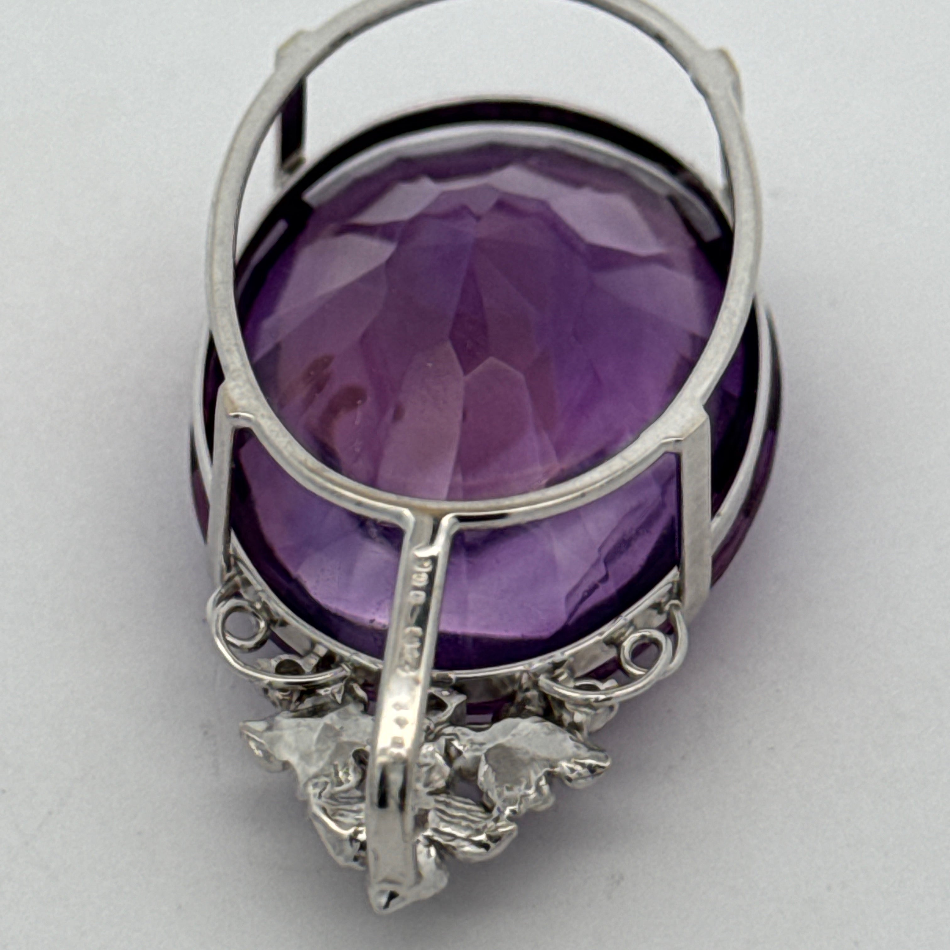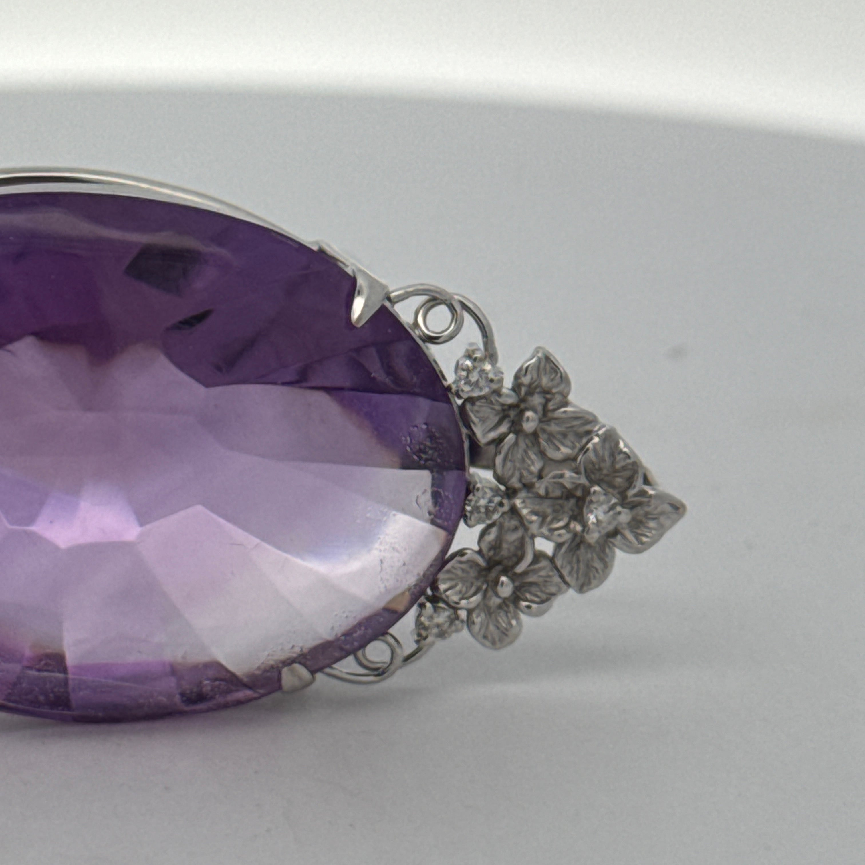 Pendant, 4 Round Brilliant Cut Diamonds 0.08cttw H-I SI1-SI2, 1 Amethyst Cabochon 58.41ct, 18K White Gold. All Weights Estimated.