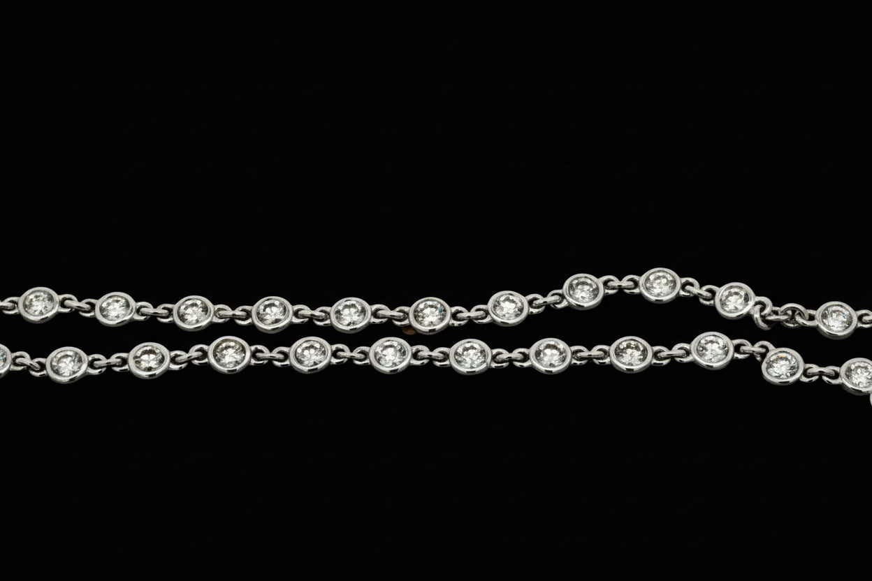Private Designer Necklace 65 Round Brilliant Cut Diamonds 3.65cttw G-H SI1-SI2, 14K White Gold 7.72g, All Weights Estimated.