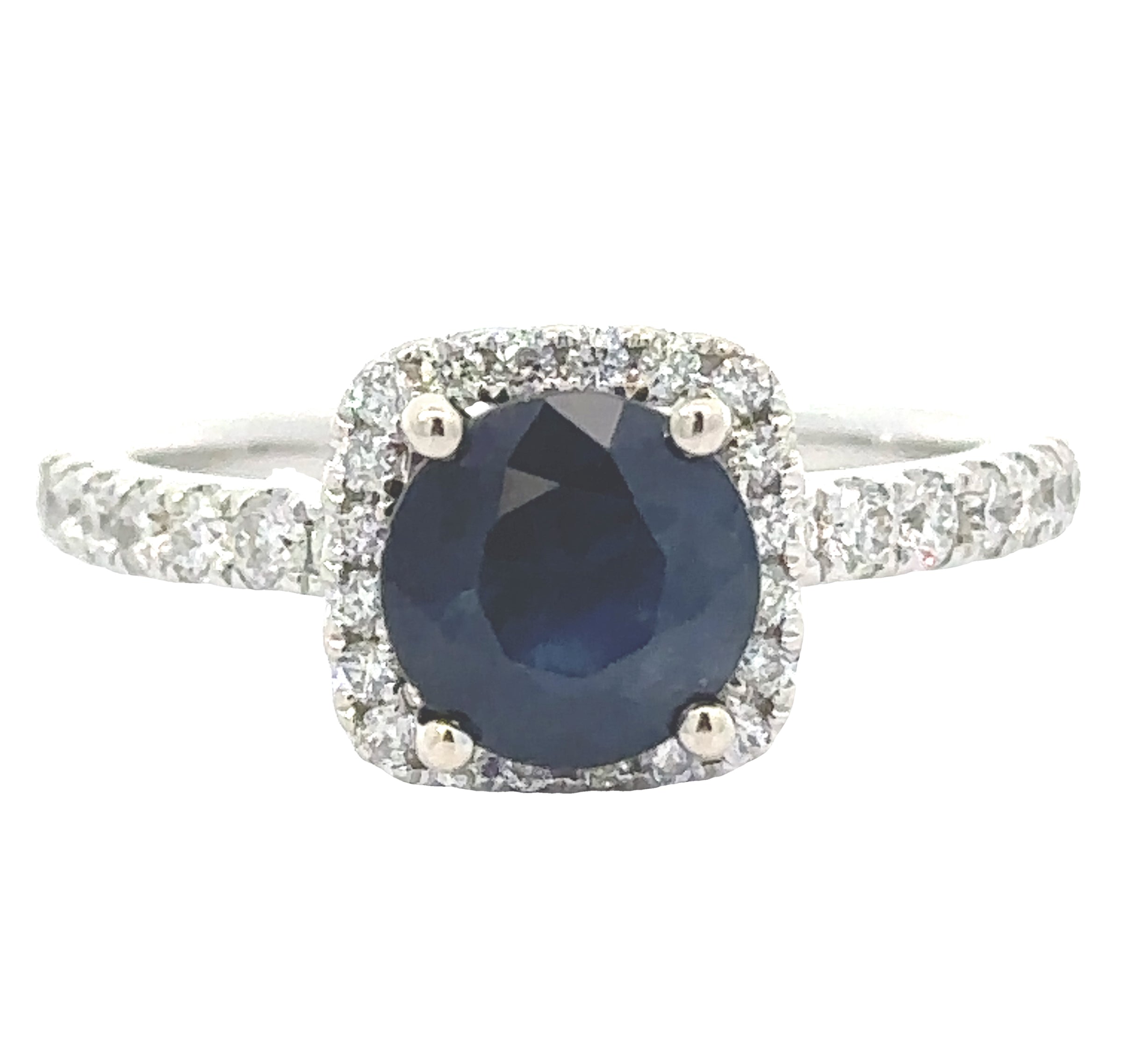 Leo Schachter Halo Ring, 1 Round Sapphire 2.25ct, Round Diamond 0.50ct H-I SI1-SI2, 14K White Gold 4.14g