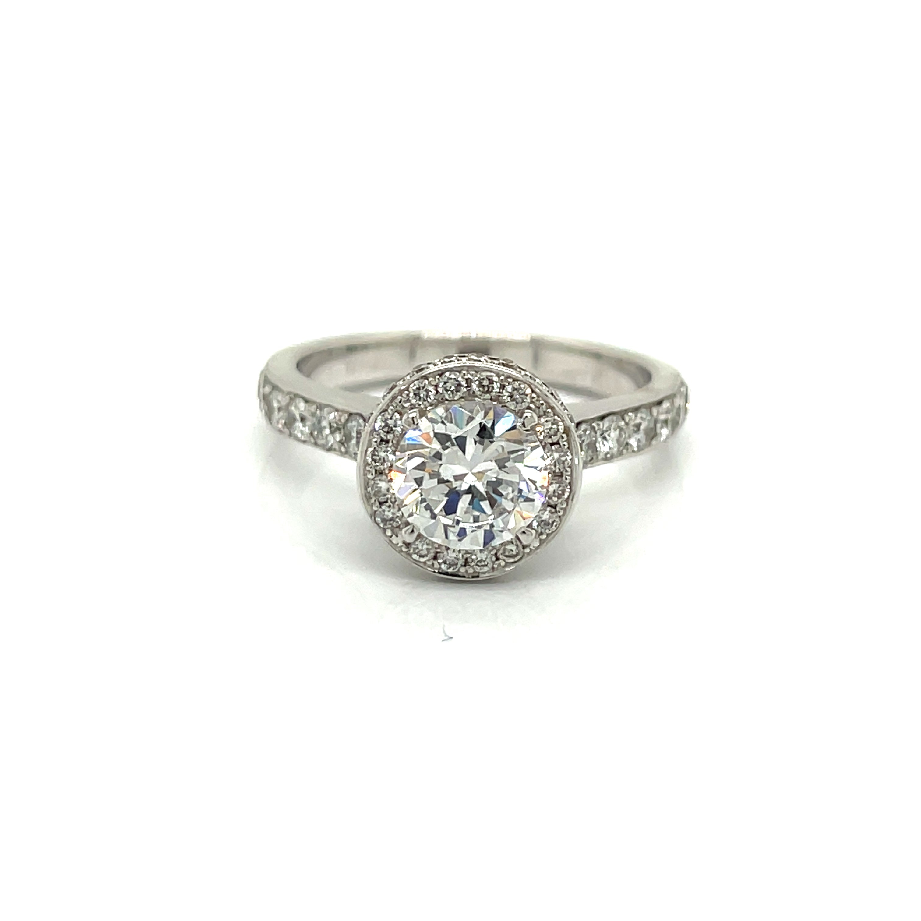 Michael M. Semi-Mount Ring, 1 Round Cubic Zirconia, 71 Round Diamond 1.07 cttw, 18K White Gold 5.80g
