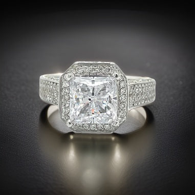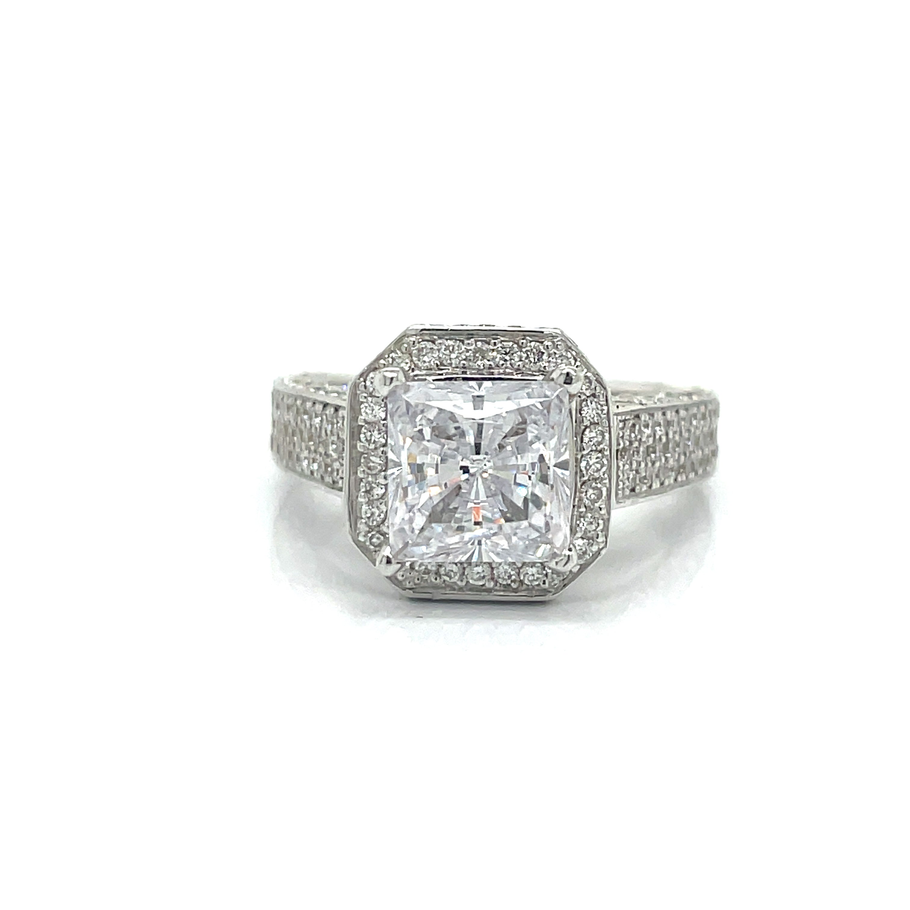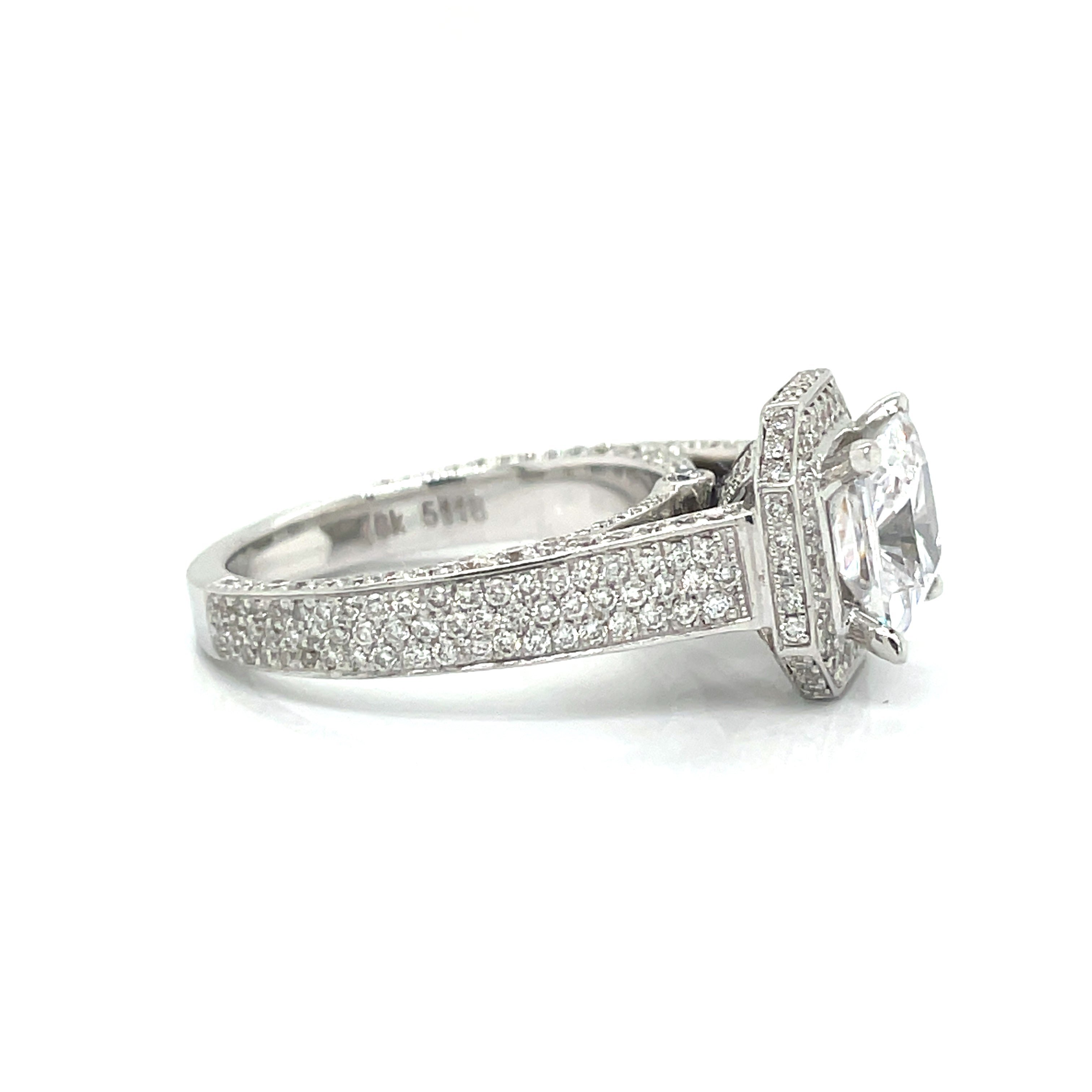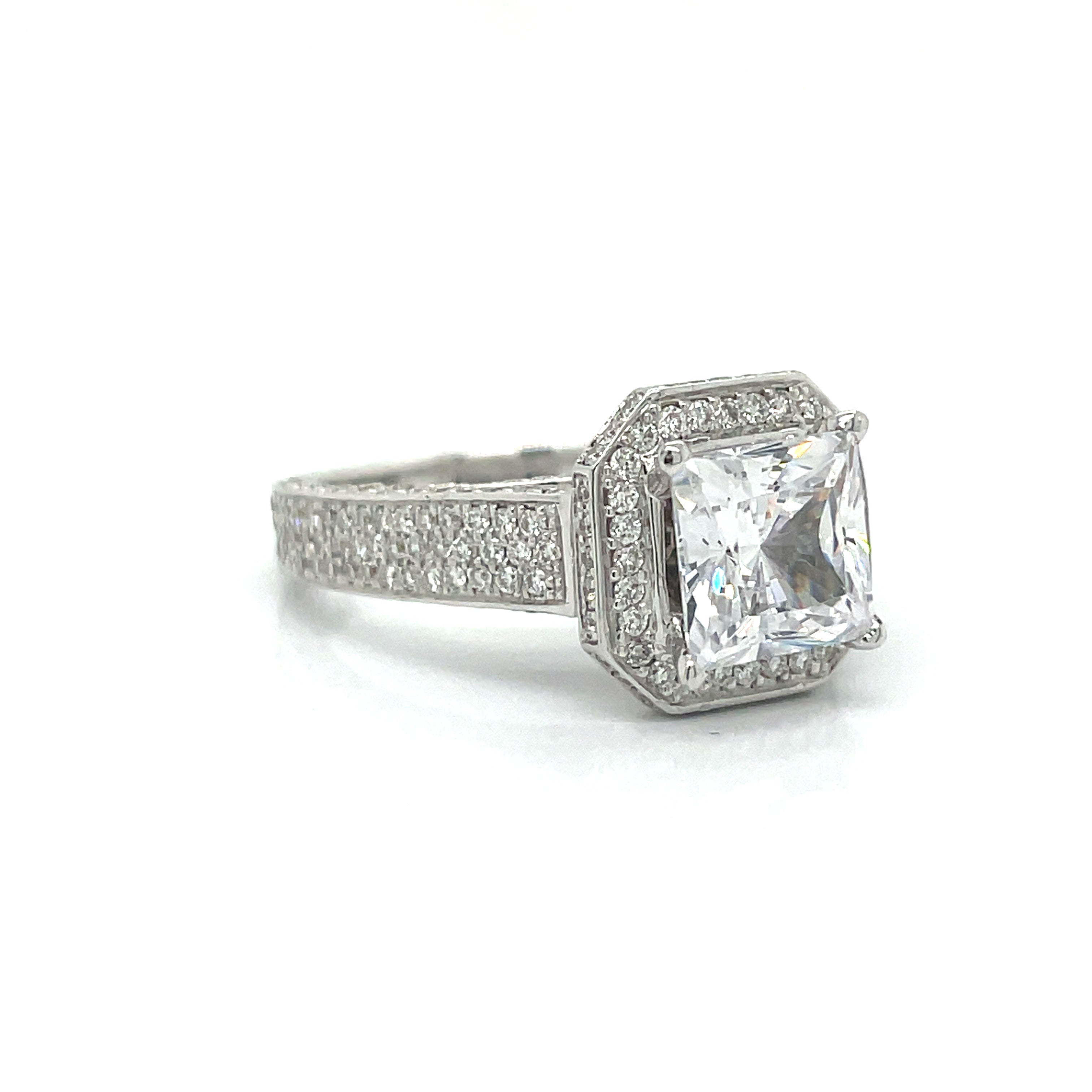 Michael M. Semi-Mount Ring, 1 Princess Cut Cubic Zirconia, Round Diamond 1.50 cttw, 18K White Gold 8.30g