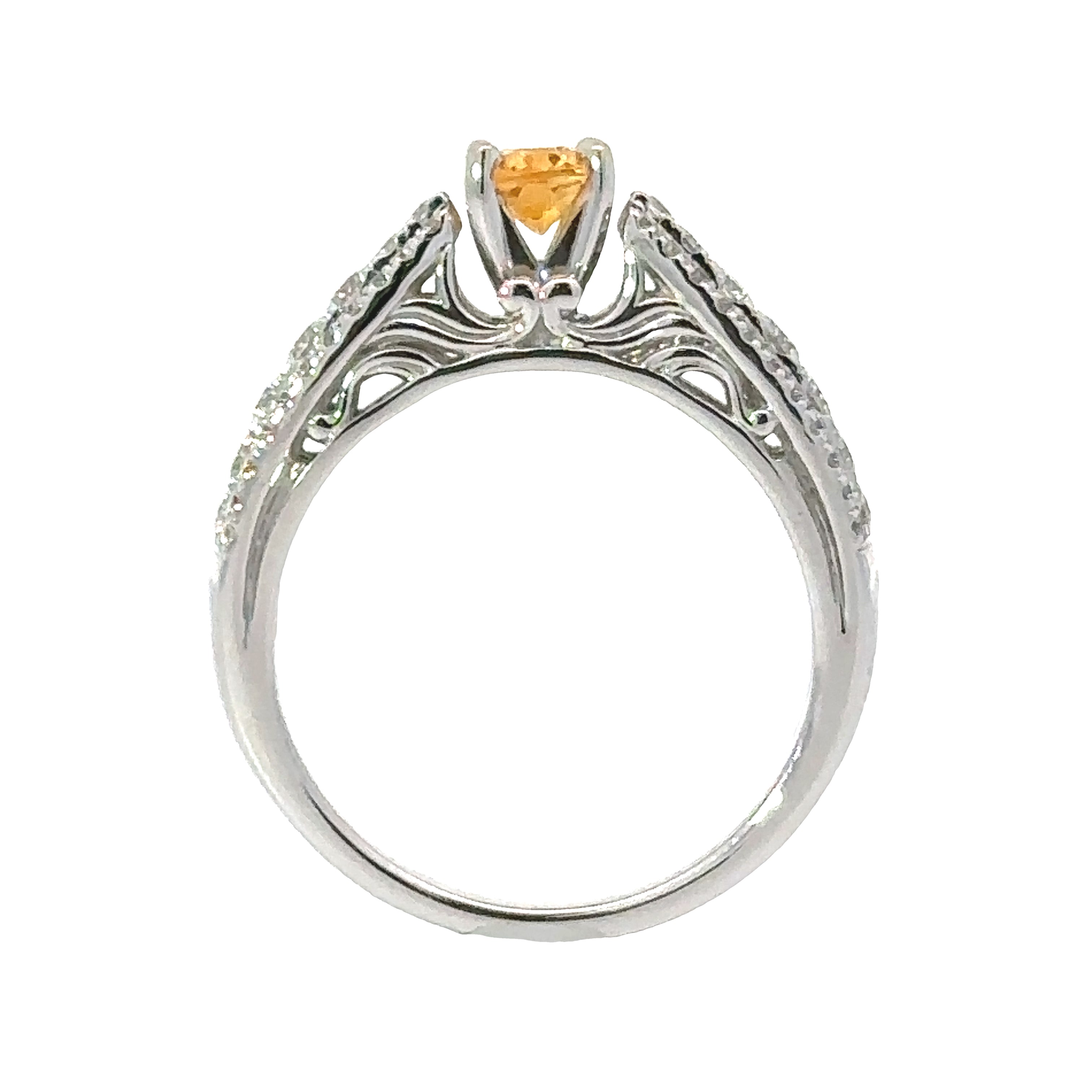 Ring, 1 Oval Citrine 0.41 ct, Round Diamond 0.63 cttw G-H SI1-SI2, 14K White Gold 6.10g