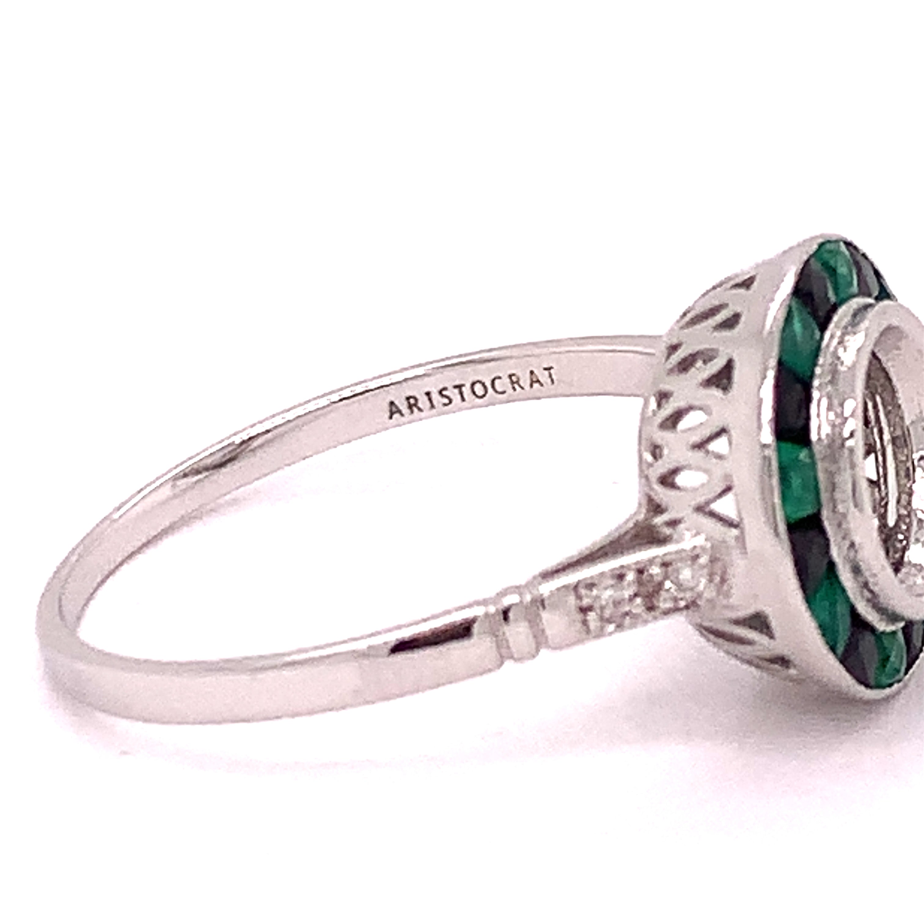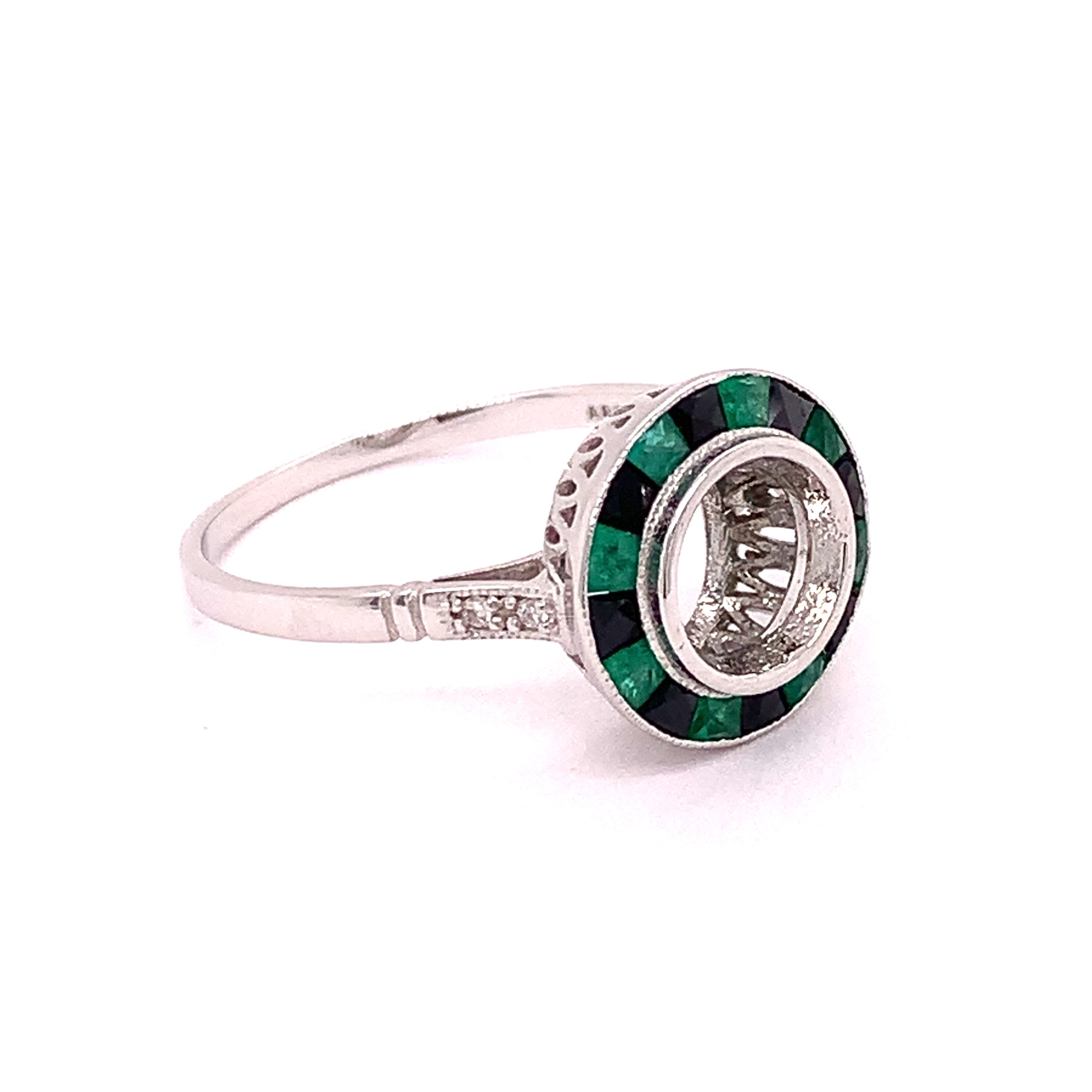 Art Deco Reproduction Aristocrat Semi Mount Ring, 4 Diamond 0.02 cttw, 8 Onyx 0.40 cttw, 8 Emerald 0.30 cttw, 18K White Gold 2.37g