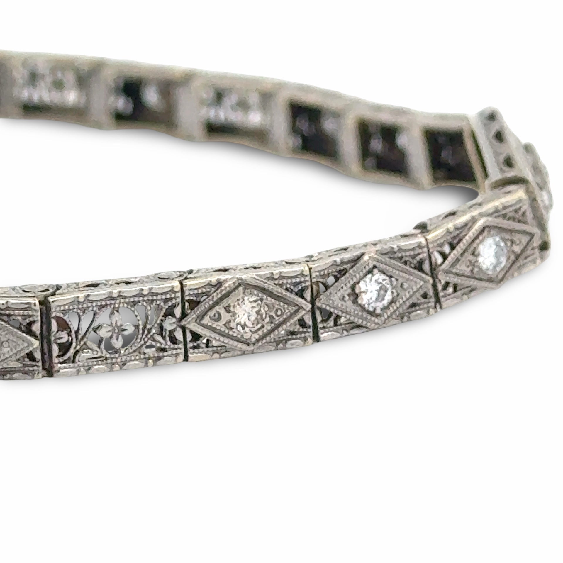 Art Deco Bracelet 9 Old European Cut Diamond 0.33 ct F-G VS1-SI1 14K White Gold 12.50g