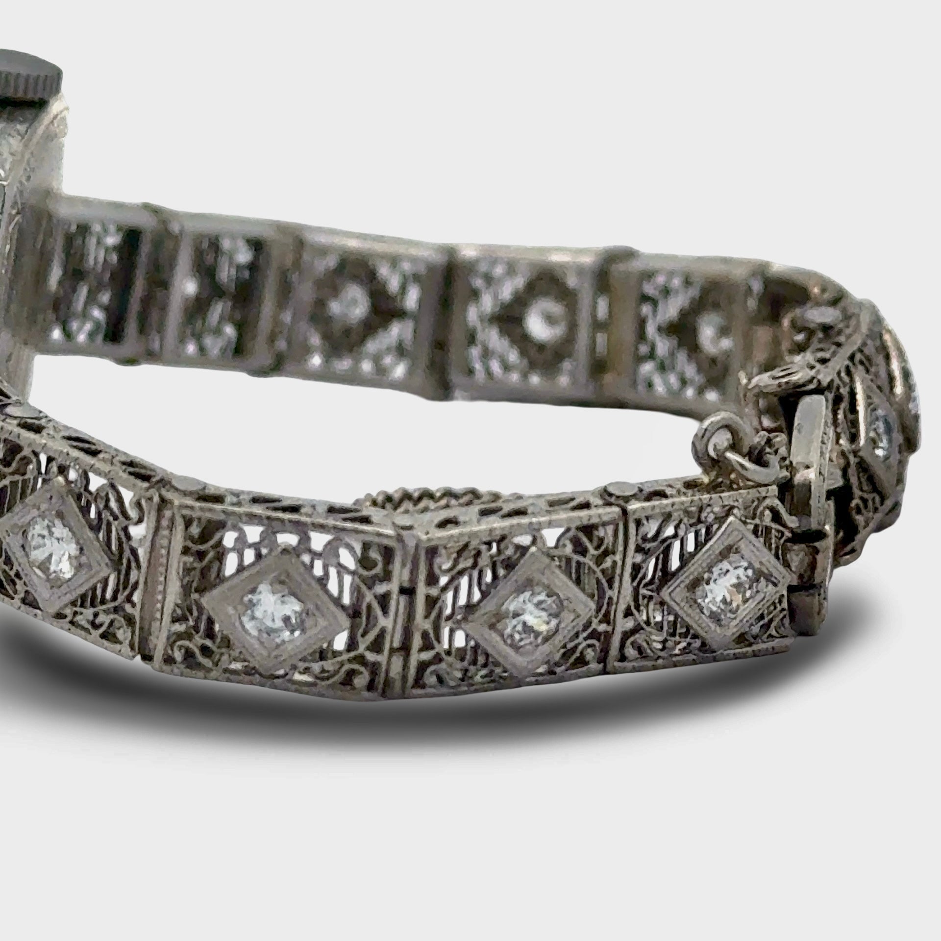 Art Deco Watch 16 Tranitional Cut Diamonds 1.25cttw. F-G VS1-SI1 14K White Gold, Watch Movement 17 Jewel ST 2DA
