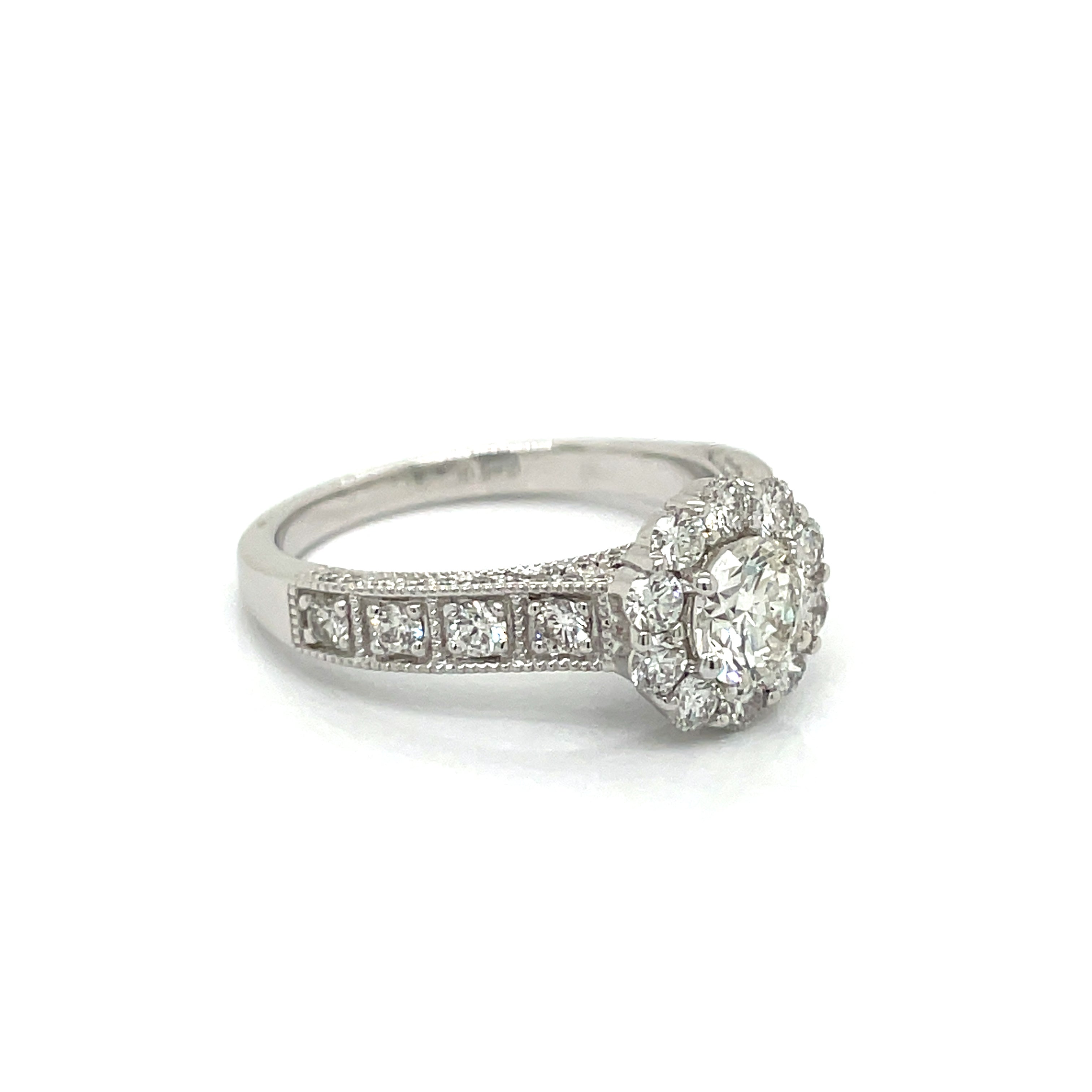 Clyde Duneier Halo Ring, 1 Round Diamond 0.62 cttw, Round Diamond 0.95 cttw, 14K White Gold 5.80g