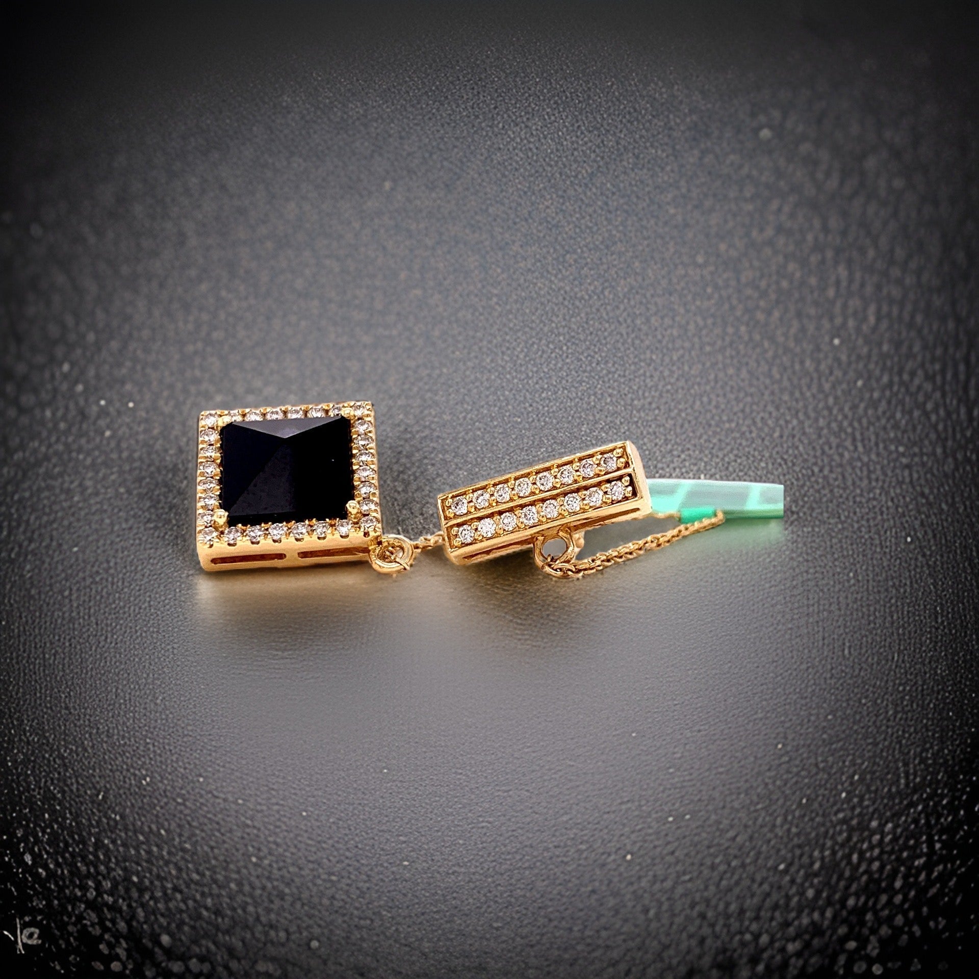 Clyde Duneier Tie Chain, Round Diamond .32 cttw, 1 Sugar Loaf Cut Onyx 1.80 cttw, 14K Yellow Gold 6.90g