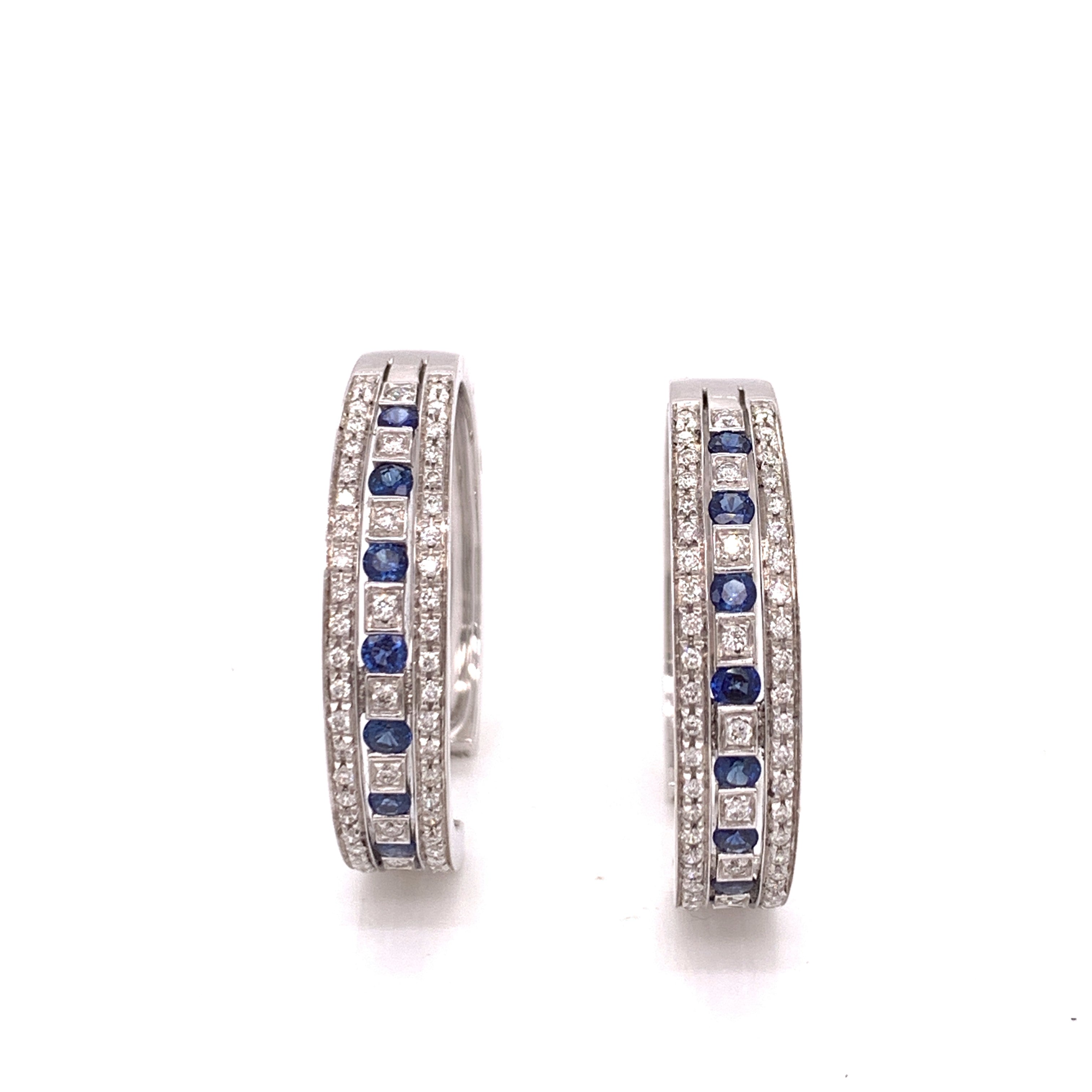 Damiani Hoop Earrings, 16 Round Sapphire 0.59 cttw, Round Diamond 0.41 cttw, 18K White Gold 12.00g