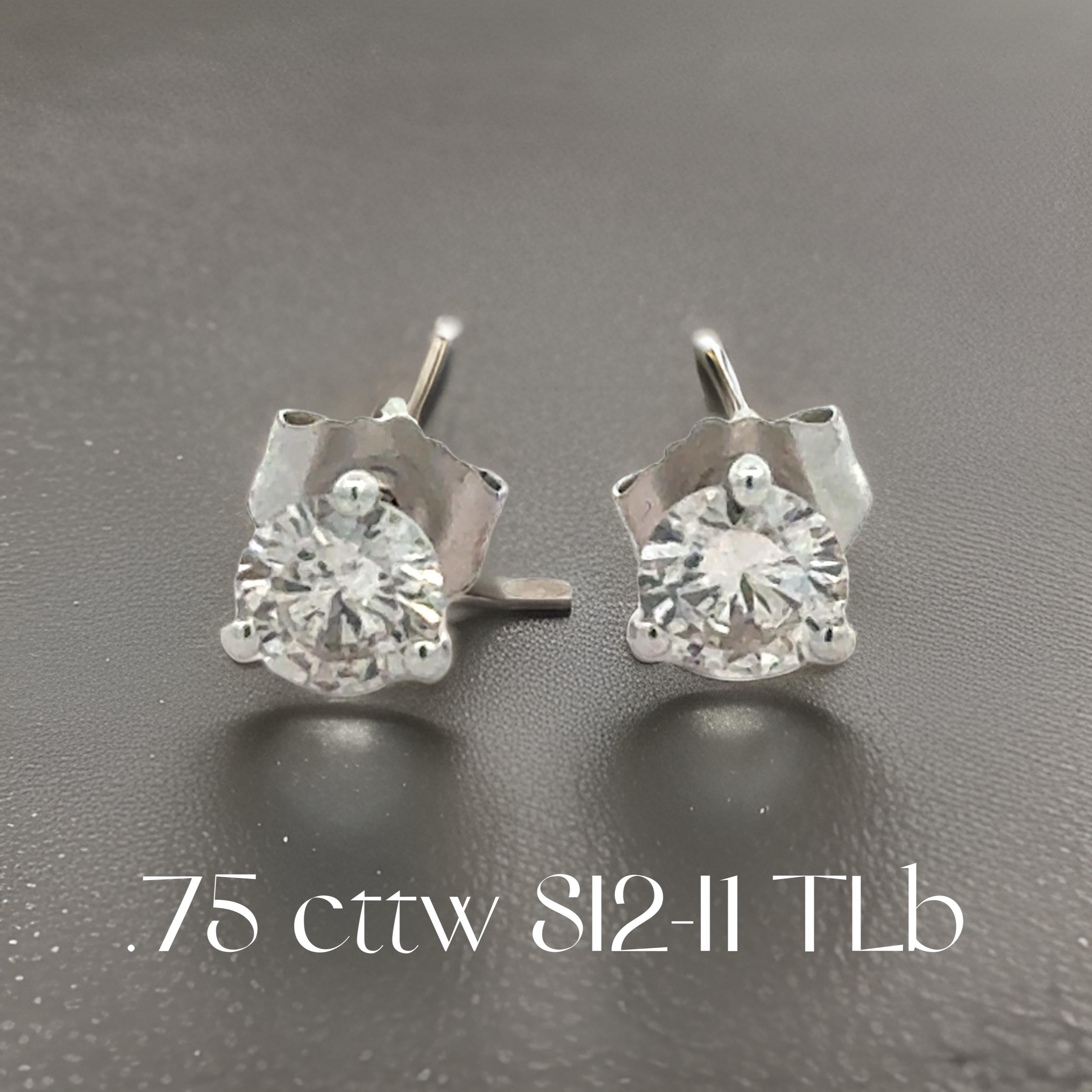Stud Earrings, 2 Round Brilliant Cut Diamond 0.75 cttw Top Light Brown SI2-I, 14K White Gold