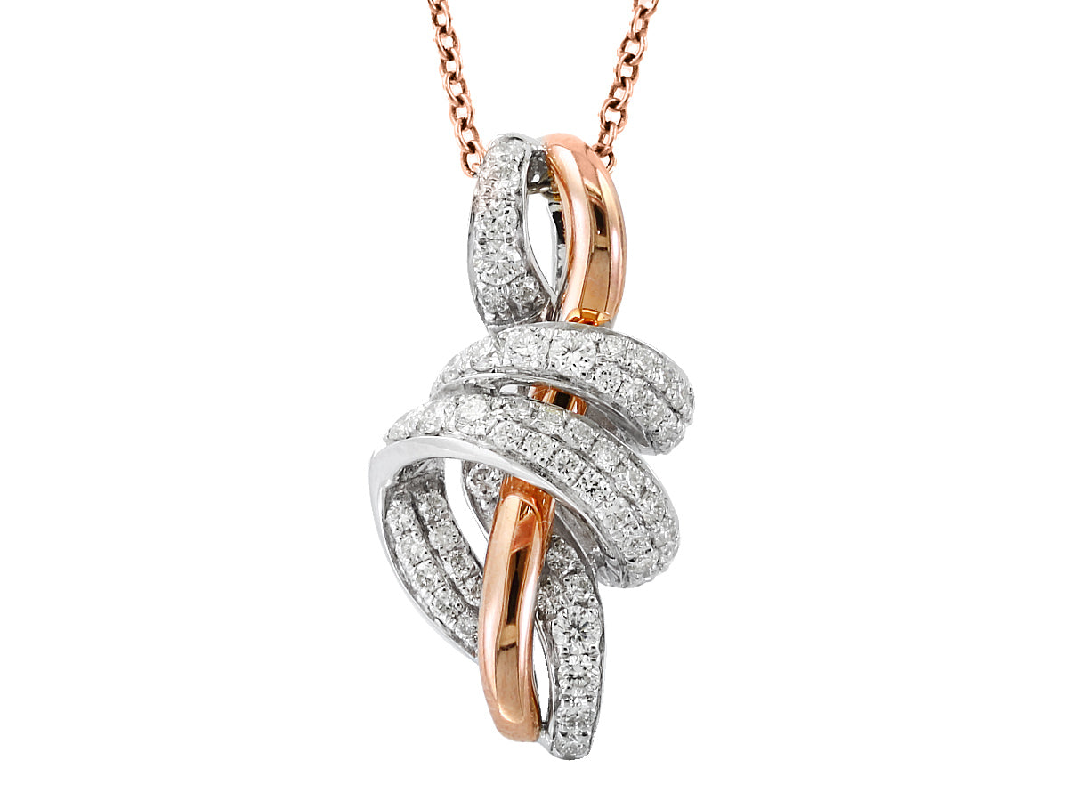Effy Pendant w/ Chain, Round Diamond 0.44 cttw, 14K White/Rose Gold