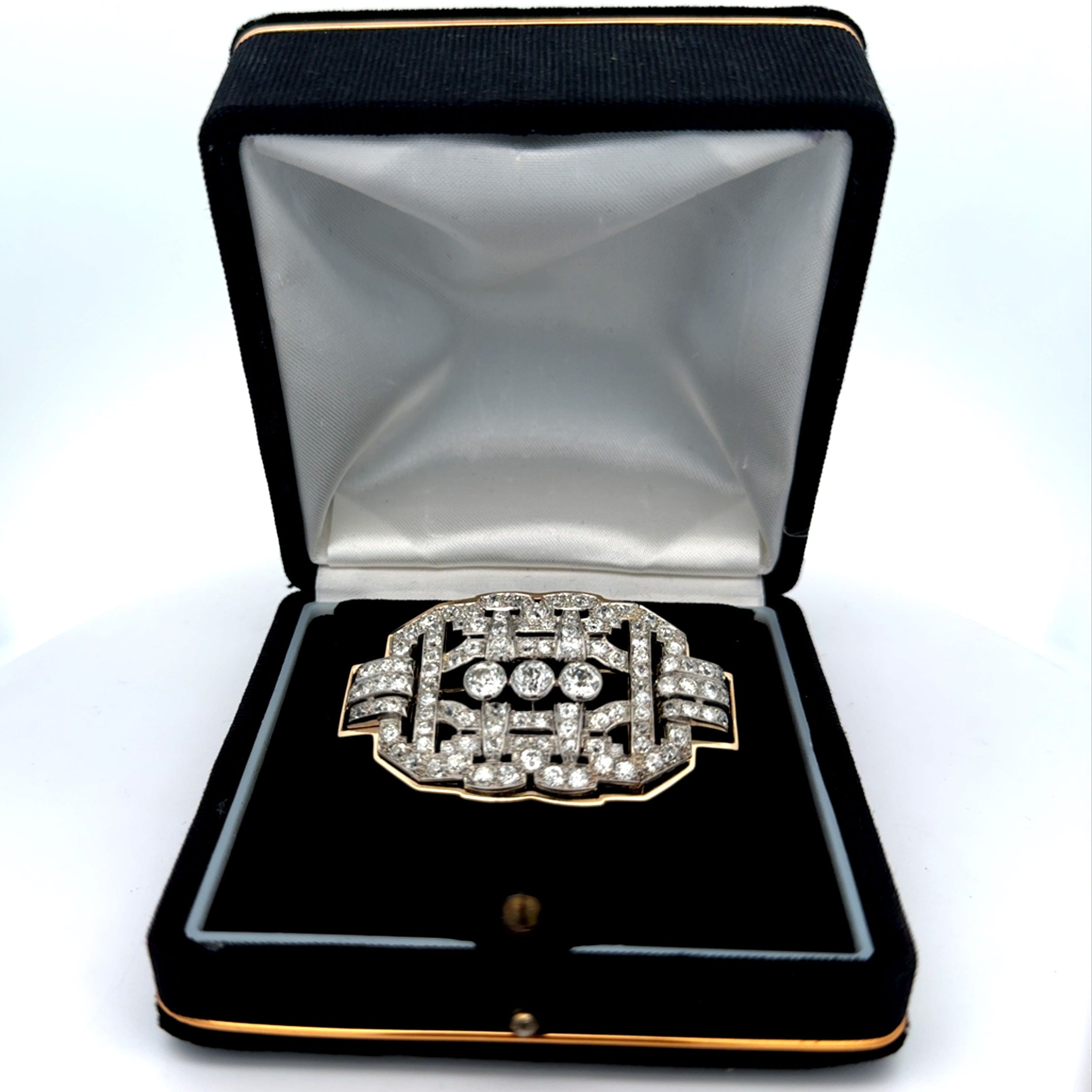 Estate Brooch/Pendant, 3 Old European Cut Diamond 1.75cttw I-K I1, 132 Old European Cut Diamond 7.95cttw H-I SI1-I1, Platinum/14K Yellow Gold 24.72g, removable frame