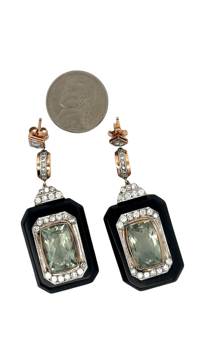 Estate Earrings, Round Diamond 2.00 cttw H-I VS2-SI1 #Estimated Weight, Onyx Carved, 2 Green Amethyst Cushion Modified 12.00 cttw #Estimated Weight, 18K Yellow Gold 21.54g