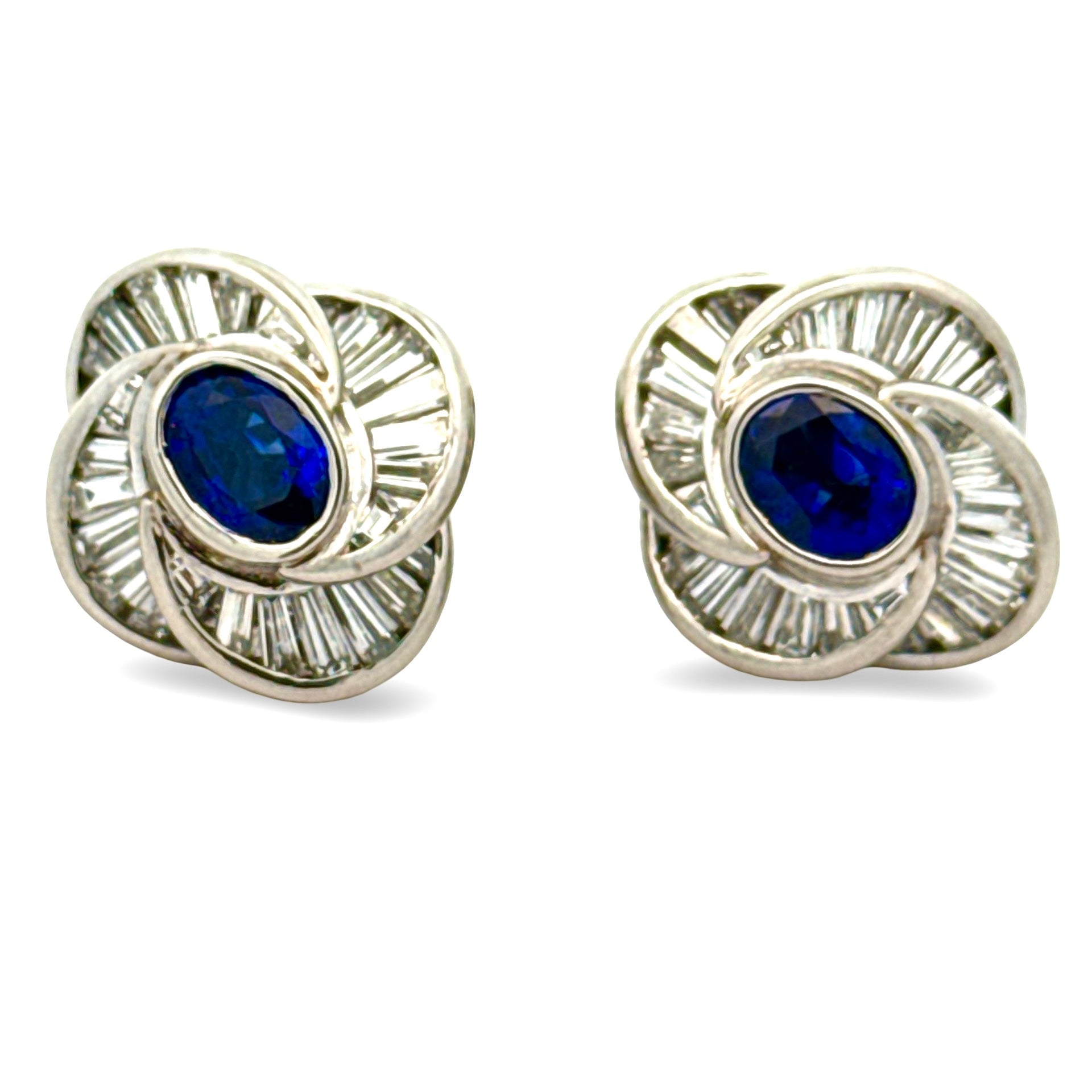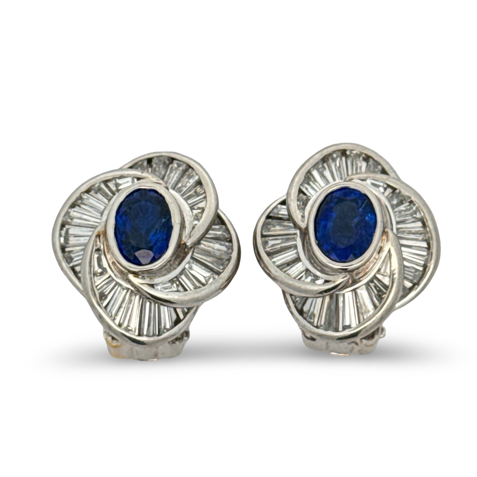 Estate Earrings, Baguette Cut Diamonds 4.13cttw G-H VS1-VS2, 2 Sapphire Oval 2.74cttw No Heat, Platinum 0 17.12g. Weights are estimated.