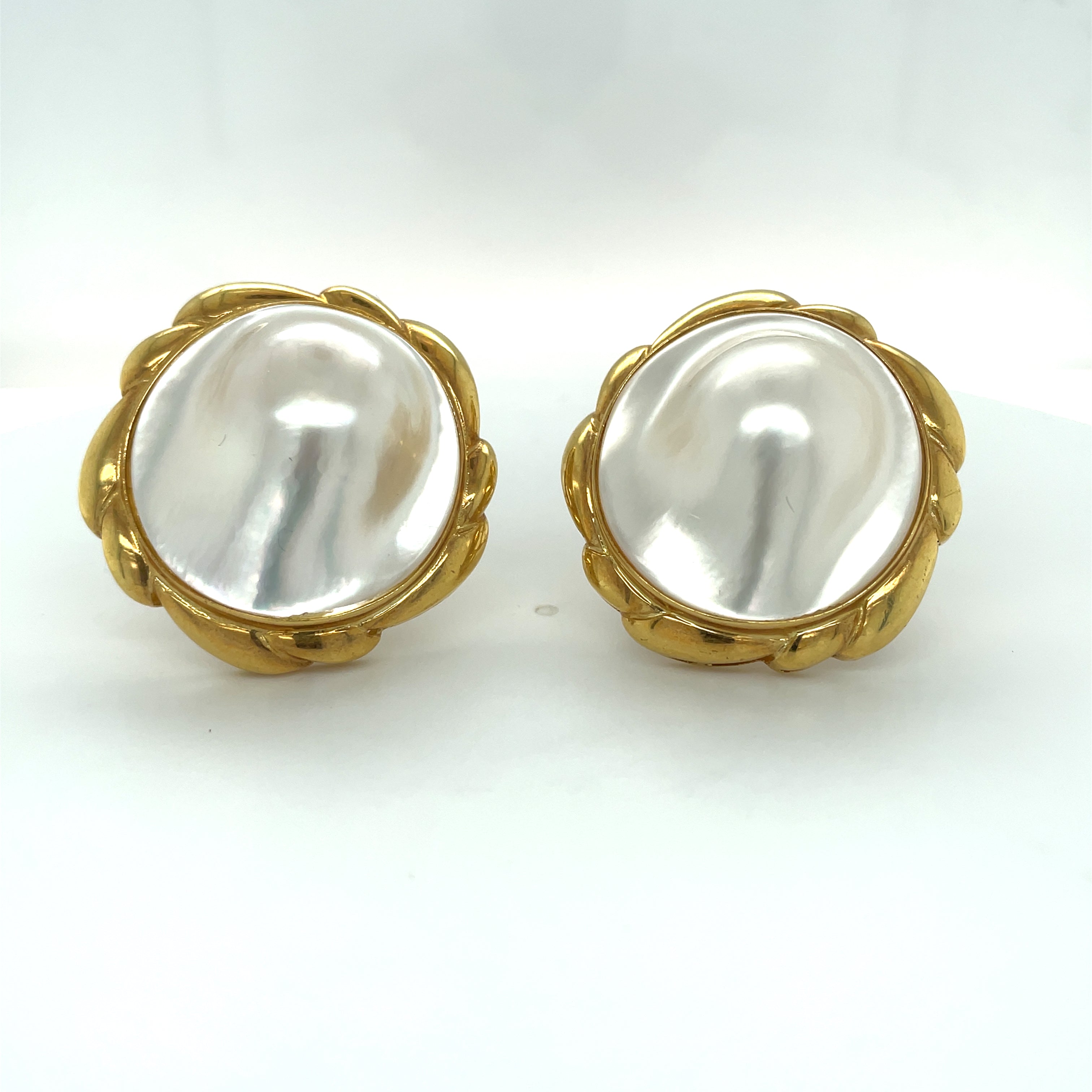 Estate Earrings, Freeform Pearl, 18K Yellow Gold 14.00g