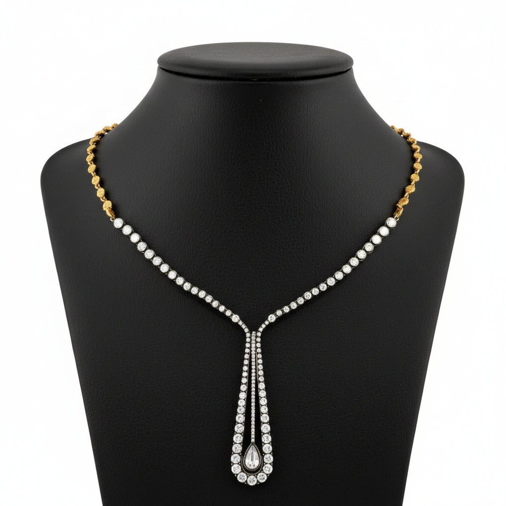 Estate Necklace, Rose Cut Diamonds 7.55cttw H-I VS2-SI2, 22K YG/Blk Rhodium Yellow Gold 66.00g, All Weights Estimated.
