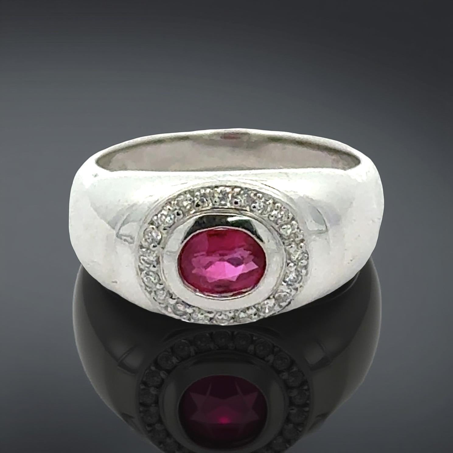 Estate Ring, 20 Round Brilliant Cut Diamond 0.12 ct H-I SI1-I1,1 Ruby Oval 0.55 ct Platinum 9.14g