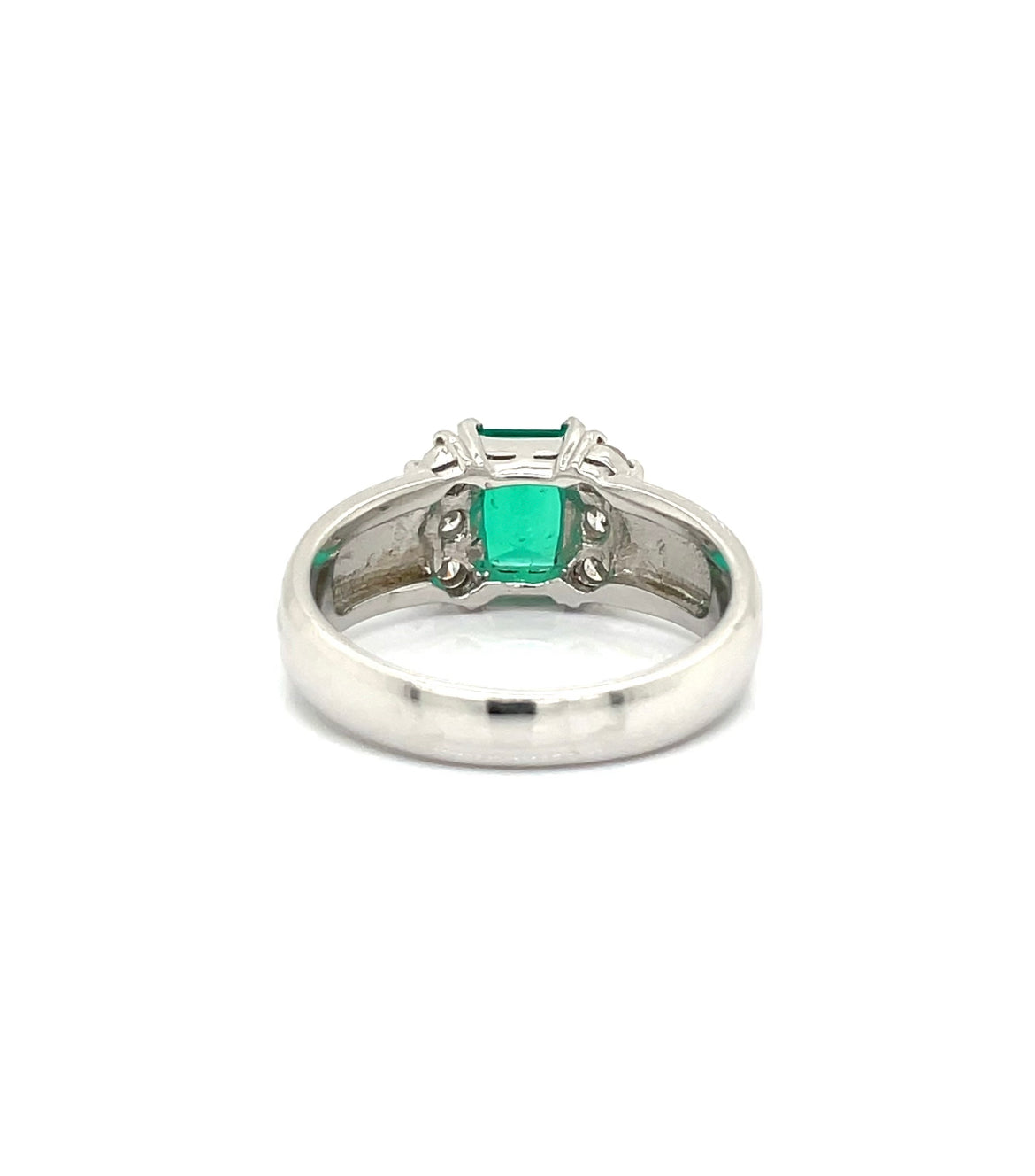 Estate Ring, 6 Round Diamond 0.29 ct G-SI1, 1 Emerald Cut Emerald 1.02 ct, Platinum 7.90g