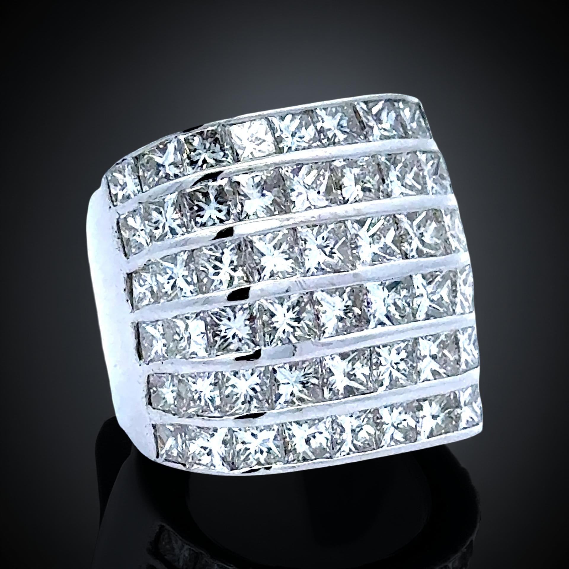 Estate Ring, 60 Princess Cut Diamond 9.00 ctTW H-I VS1-VS2 18K White Gold 16.46g. Size 4.5