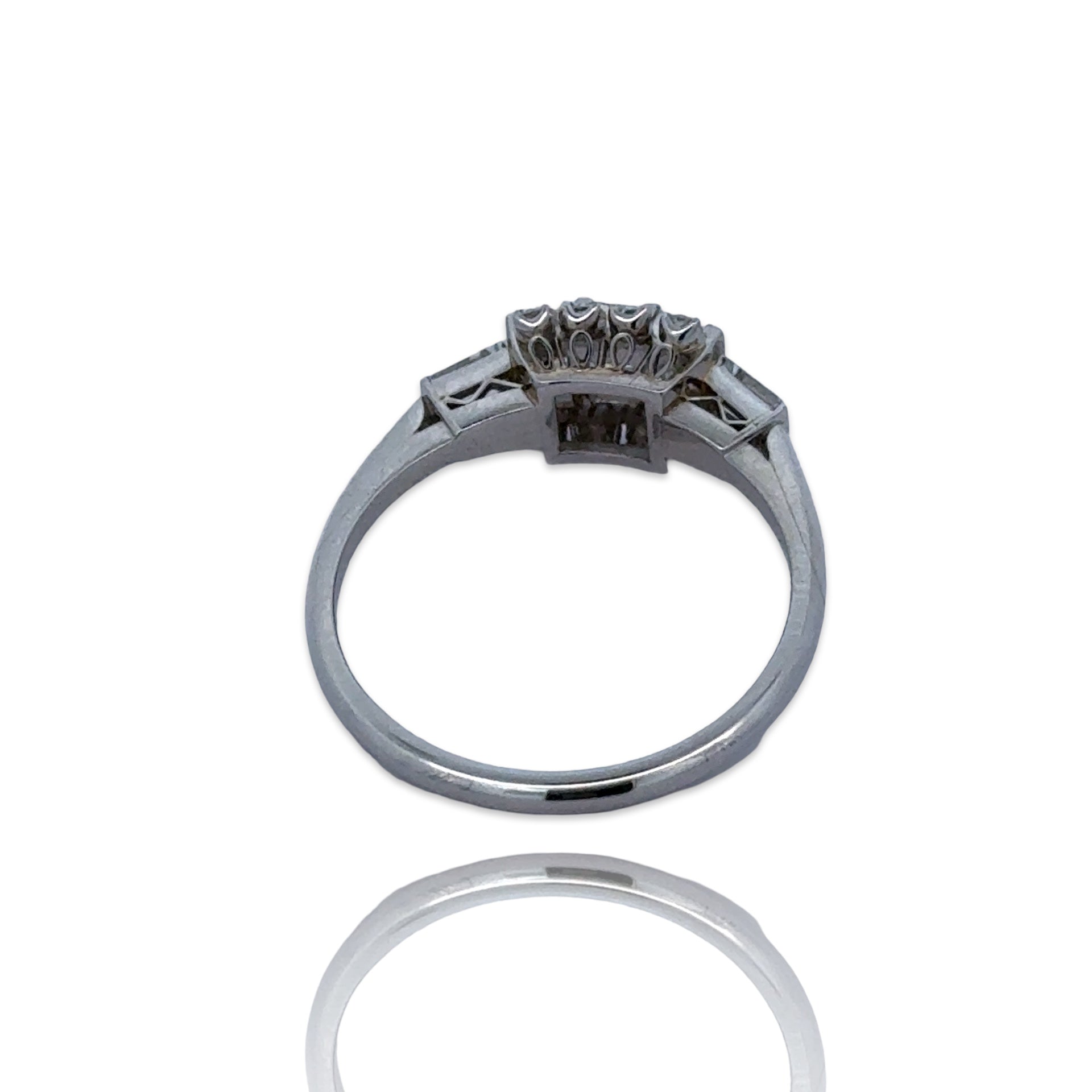 Estate Ring, RBC, Baguette and Emerald Cut Diamond 1.05 cttw G-H VS1-VS2, Platinum 3.30g. Size 6