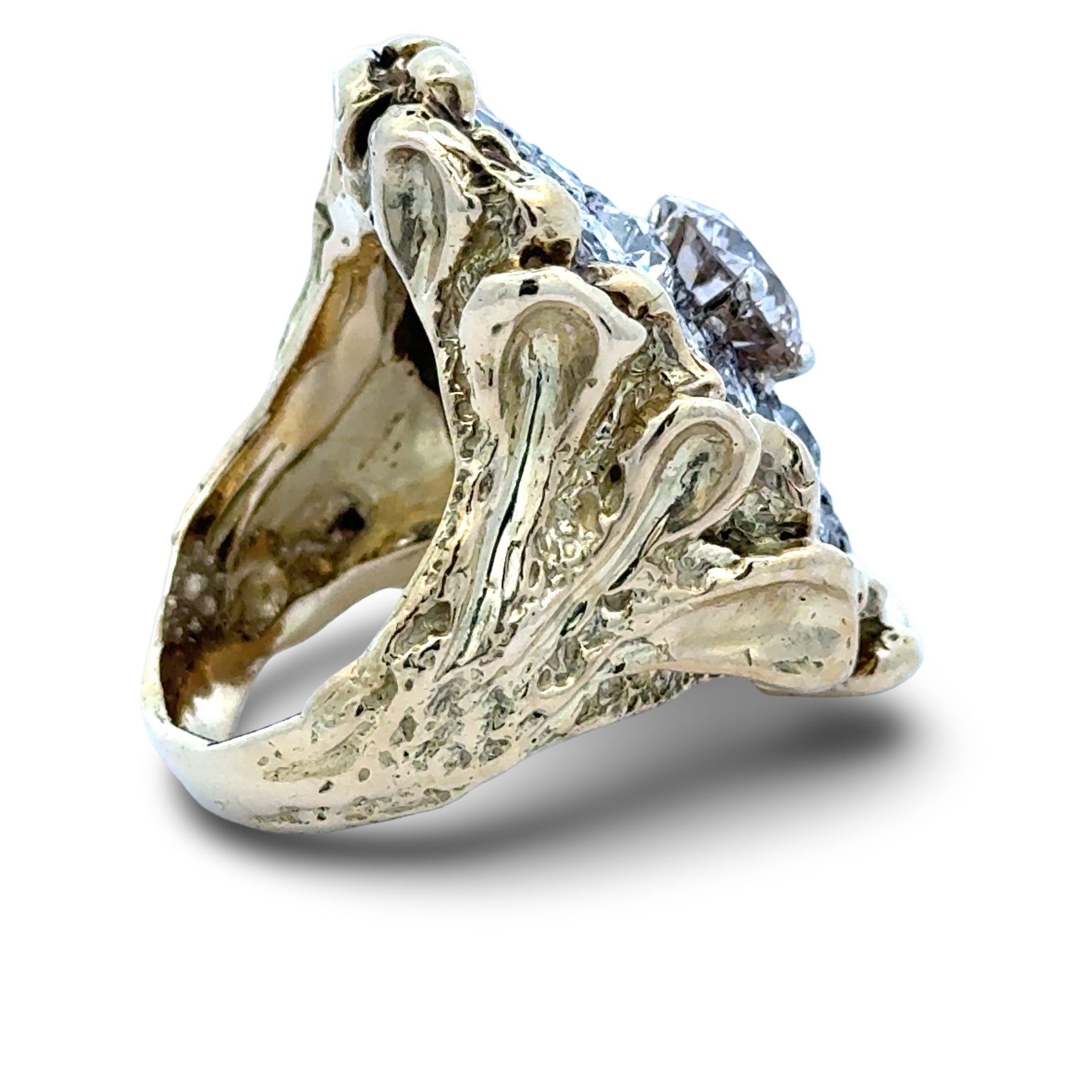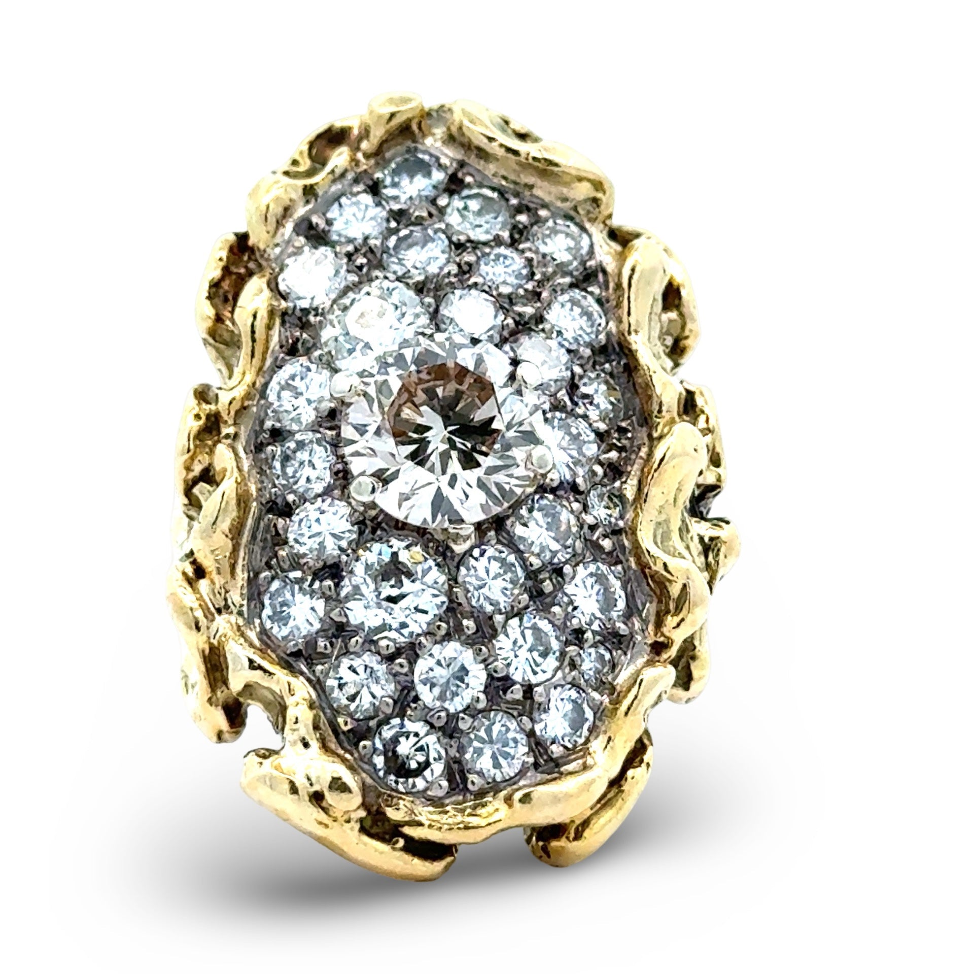 Estate Ring, 1 Round Brilliant Cut Diamond 1.35 ct TLB-TLP SI1, 29 Round Brilliant Cut Diamond 2.00 ct G-H VS2-SI1 18K White/Yellow Gold 22.38g