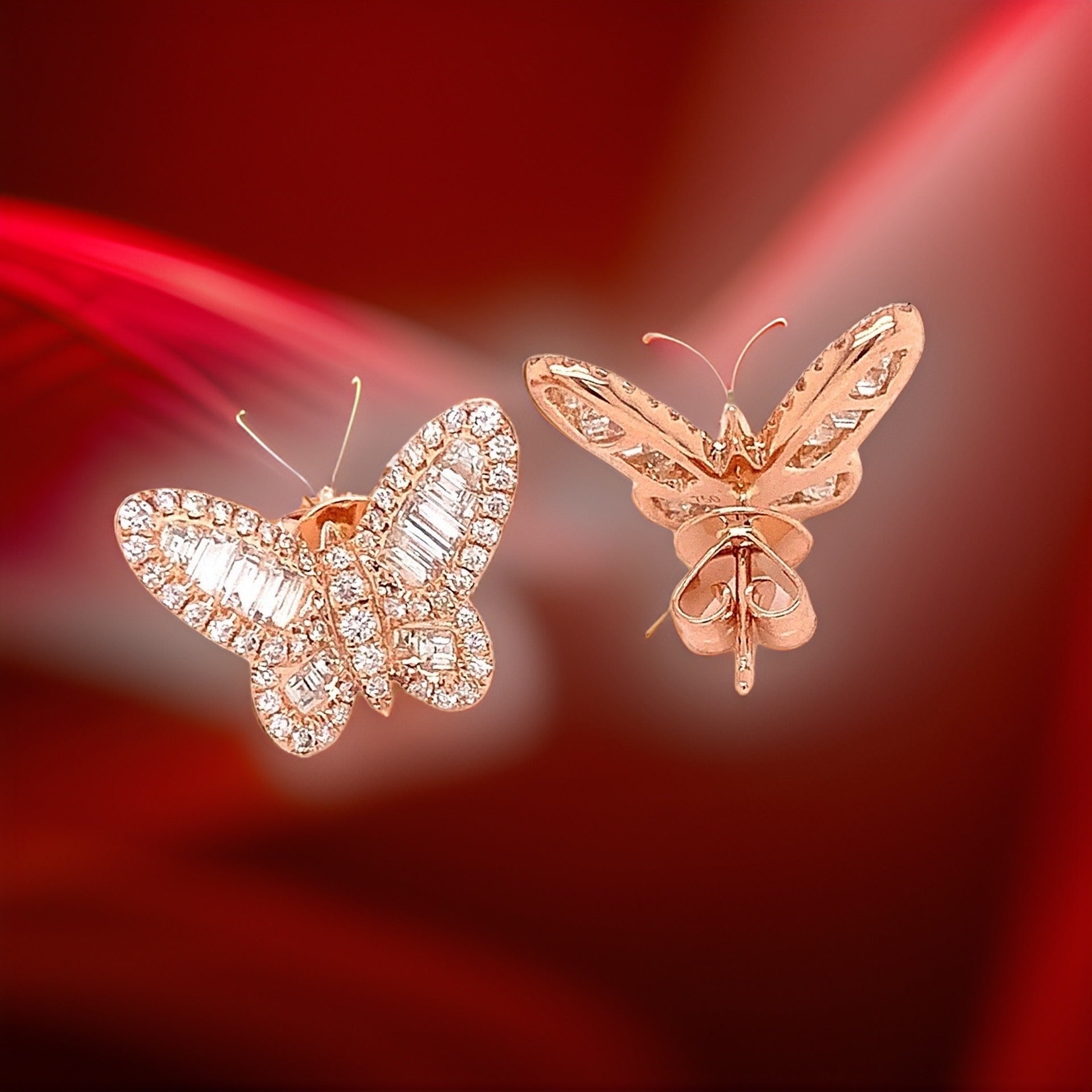 Fashionista Butterfly Earrings, Mixed Diamond 2.50 cttw, 18K Rose Gold 6.60g