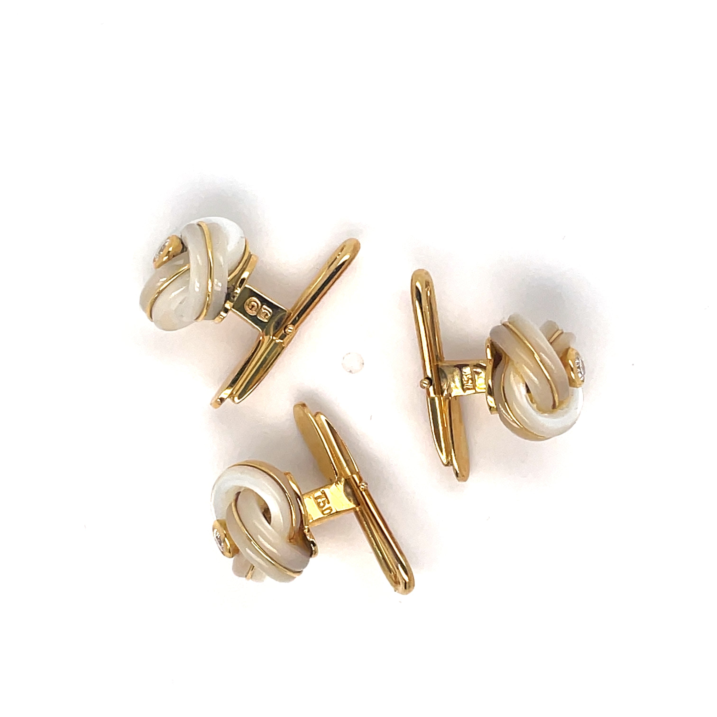 Gero Shirt Stud, 3 Freeform Mother of Pearl, 3 Round Diamond 0.16 cttw G-H VS2-SI1, 18K Yellow Gold 6.00g