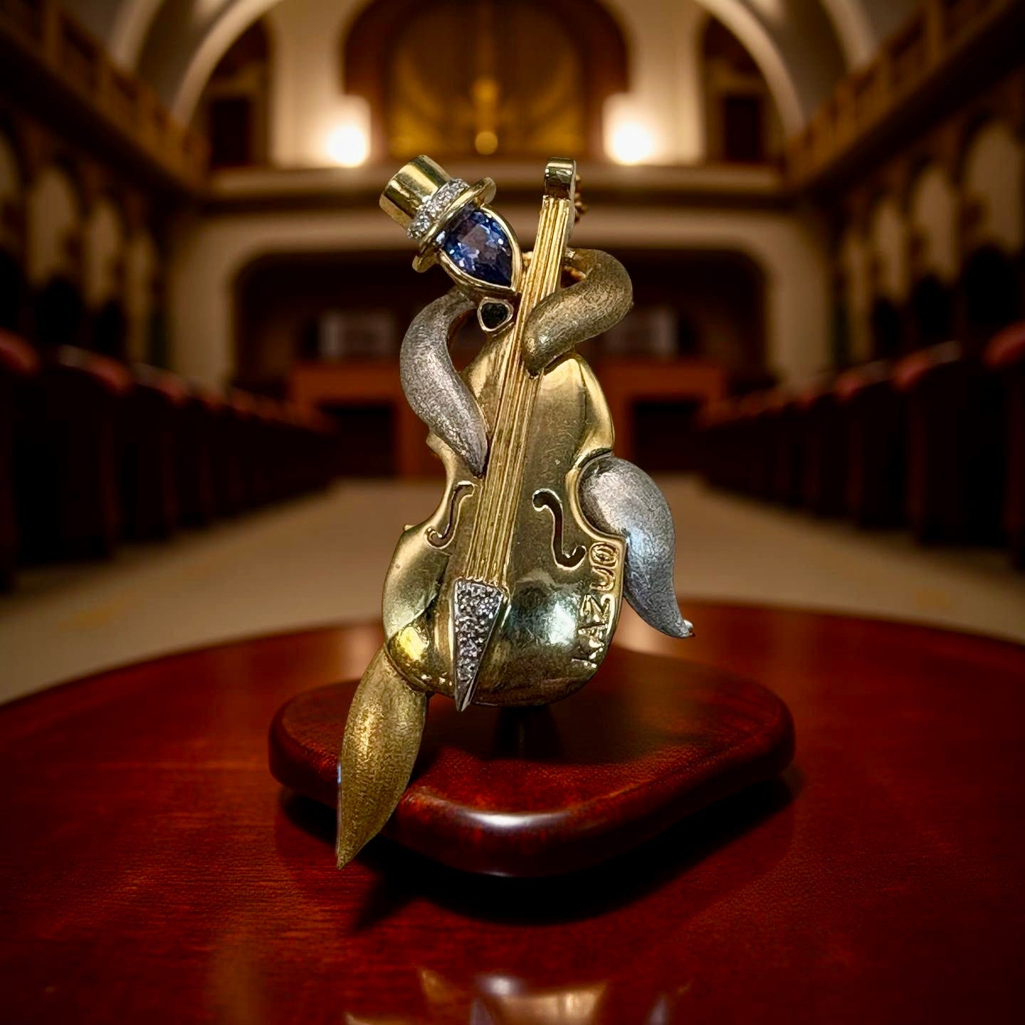 Kazuo Ogana Brooch/Pendant, 10 Round Brilliant Cut Diamond 0.10cttw. H-I SI1-SI2,1 Tanzanite Pear Shape 0.33ct. Platinum/18K Yellow Gold 16.35g