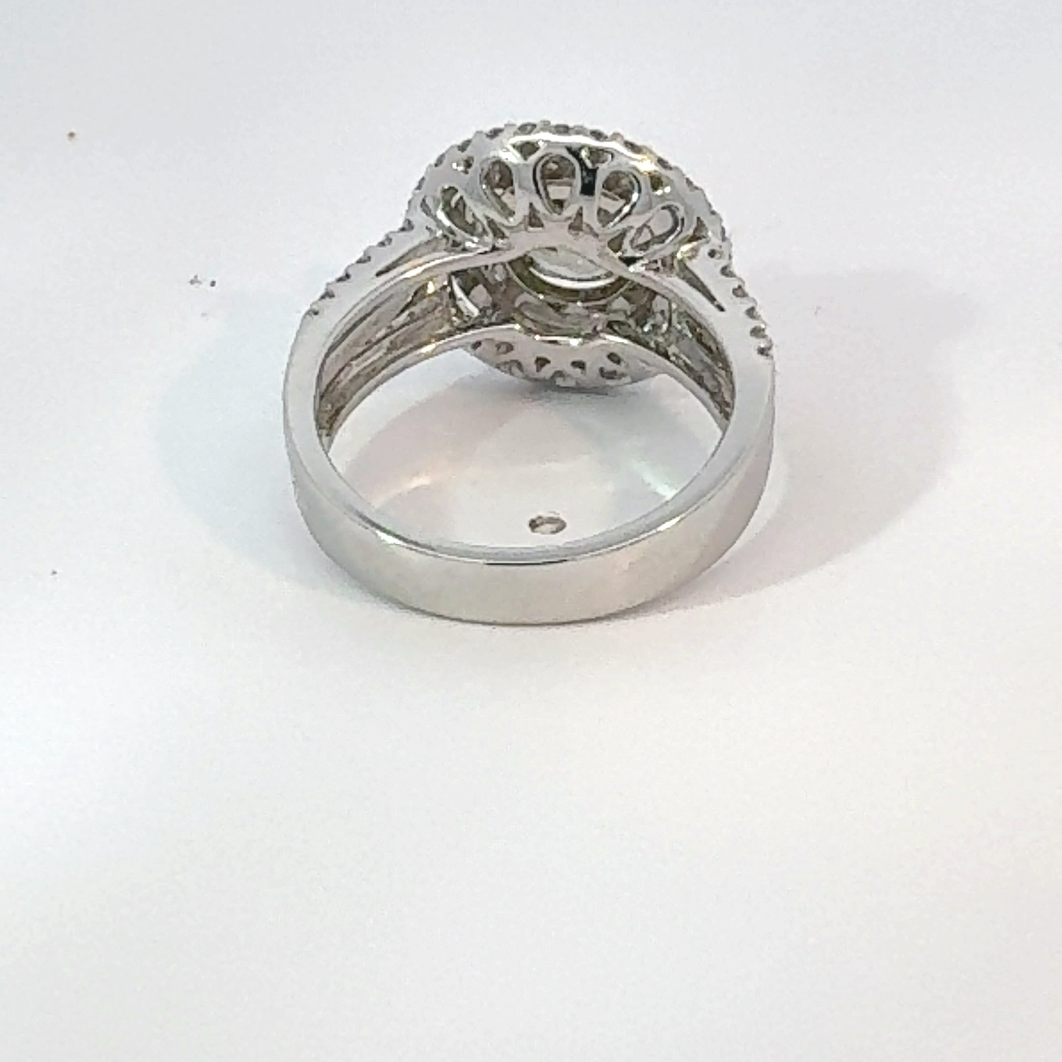 Maya Lianna Halo Ring, 1 Cushion Modified Diamond 1.73ct GIA #1182573998 Fancy Dark Grey-Yellowish Green I1 (clarity not on cert), 90 Round Diamond 0.81ct H-I SI1-SI2, 18K White Gold 5.90g...